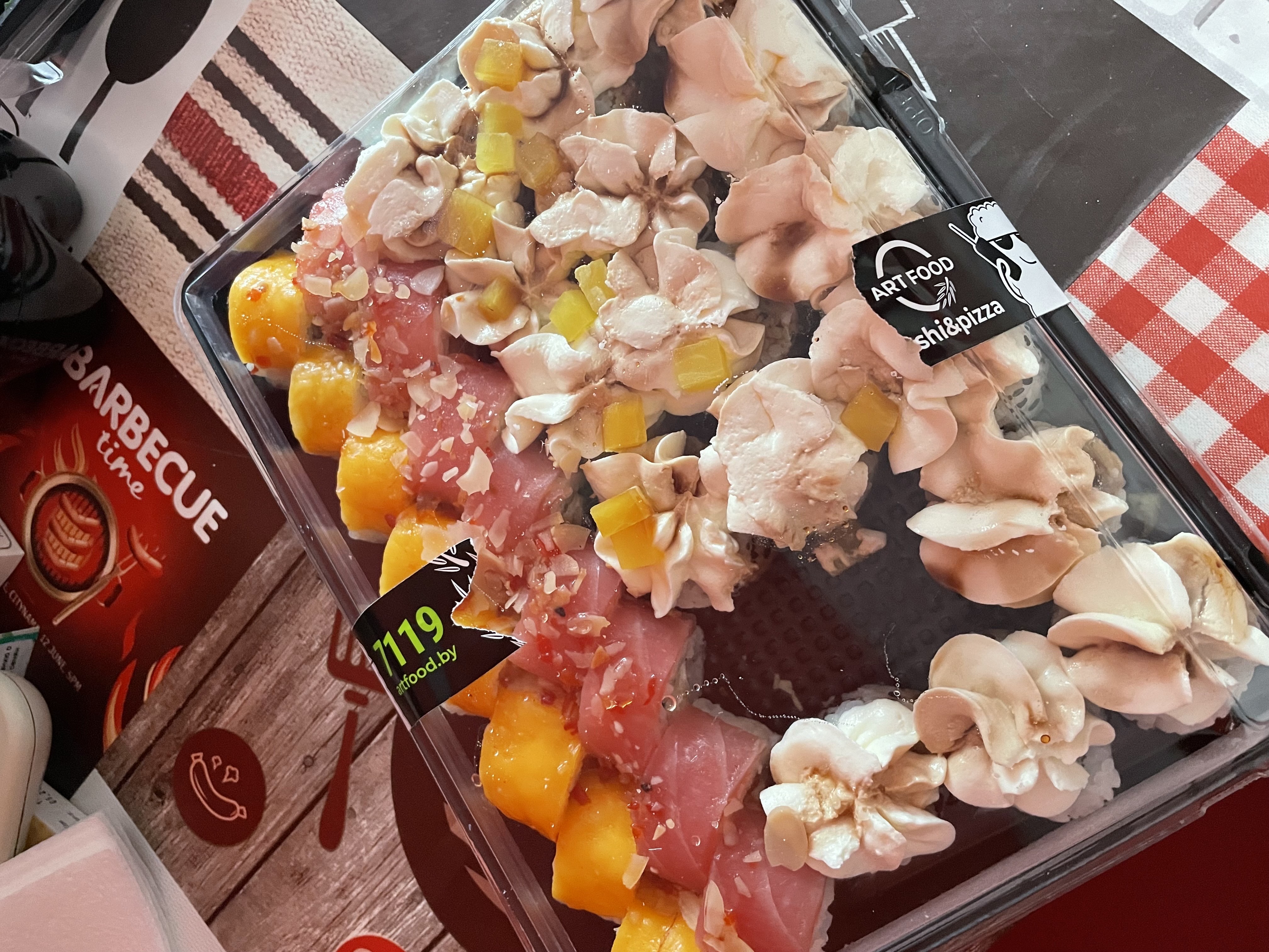- Промокод дает право на скидку до 60% на суши-сеты от "ART FOOD"