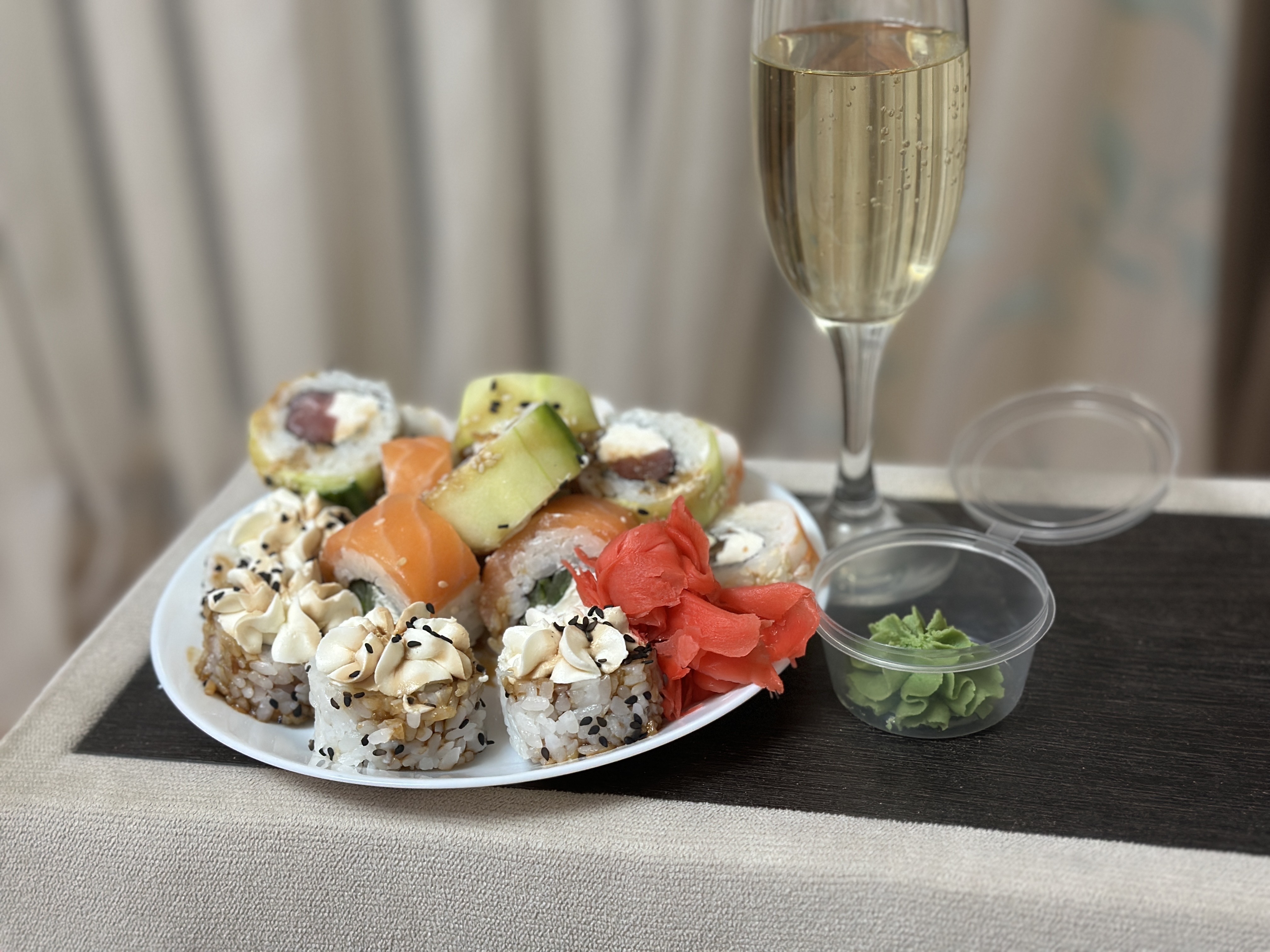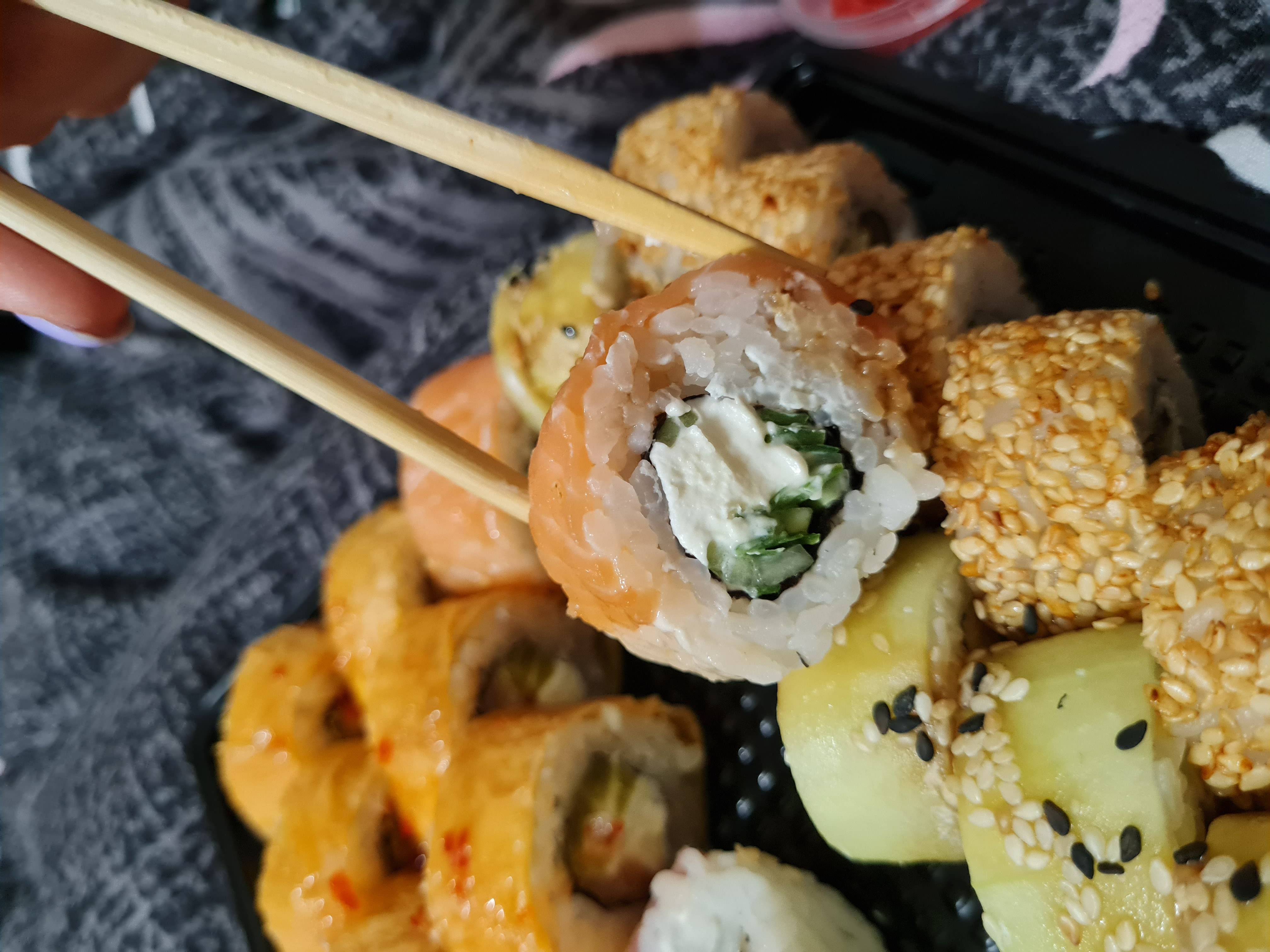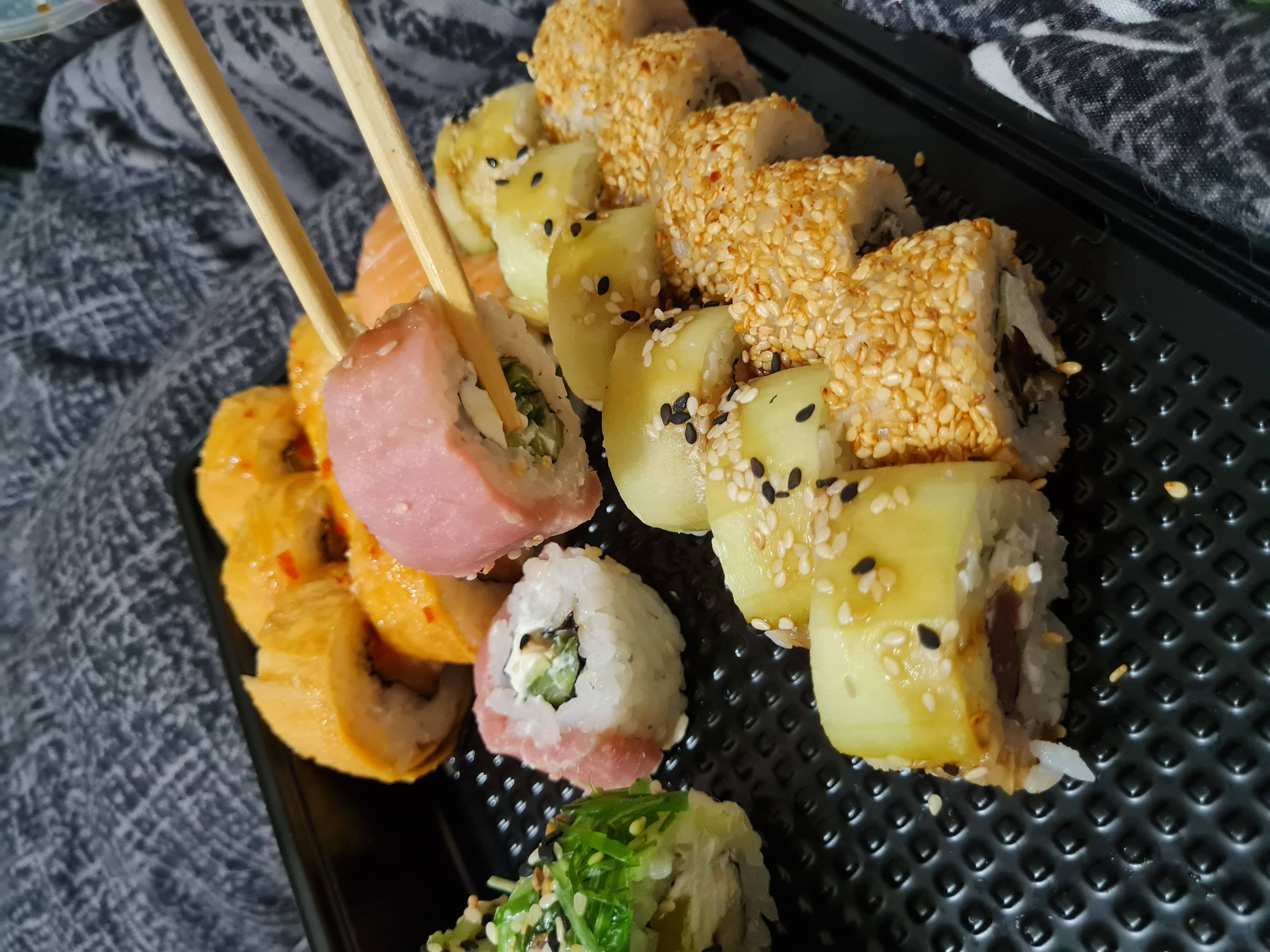 - На 1 суши-сет прилагается не более 4 комплектов палочек