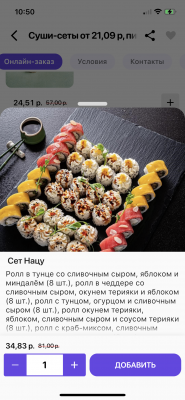 - суши-сеты: от 22 р. от 46 р.