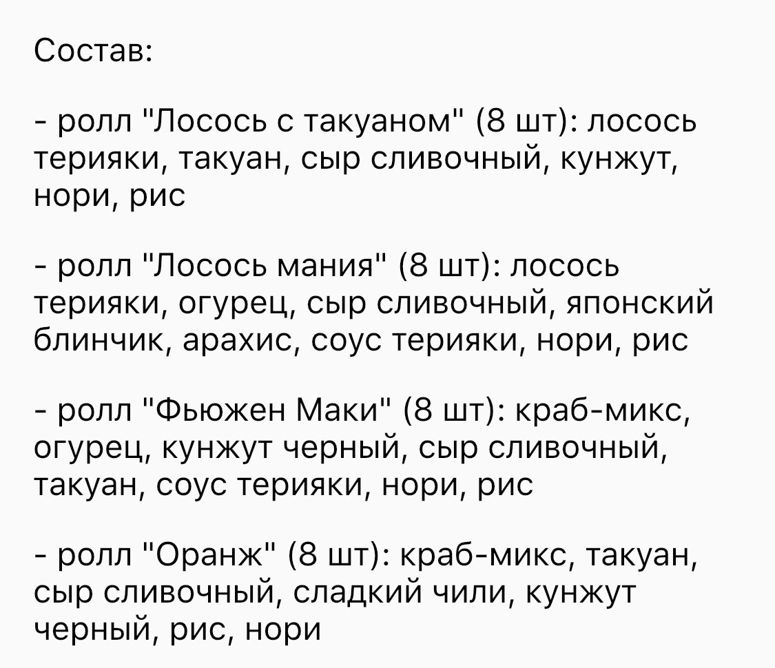 - суши-сеты: от 22 р. от 46 р.