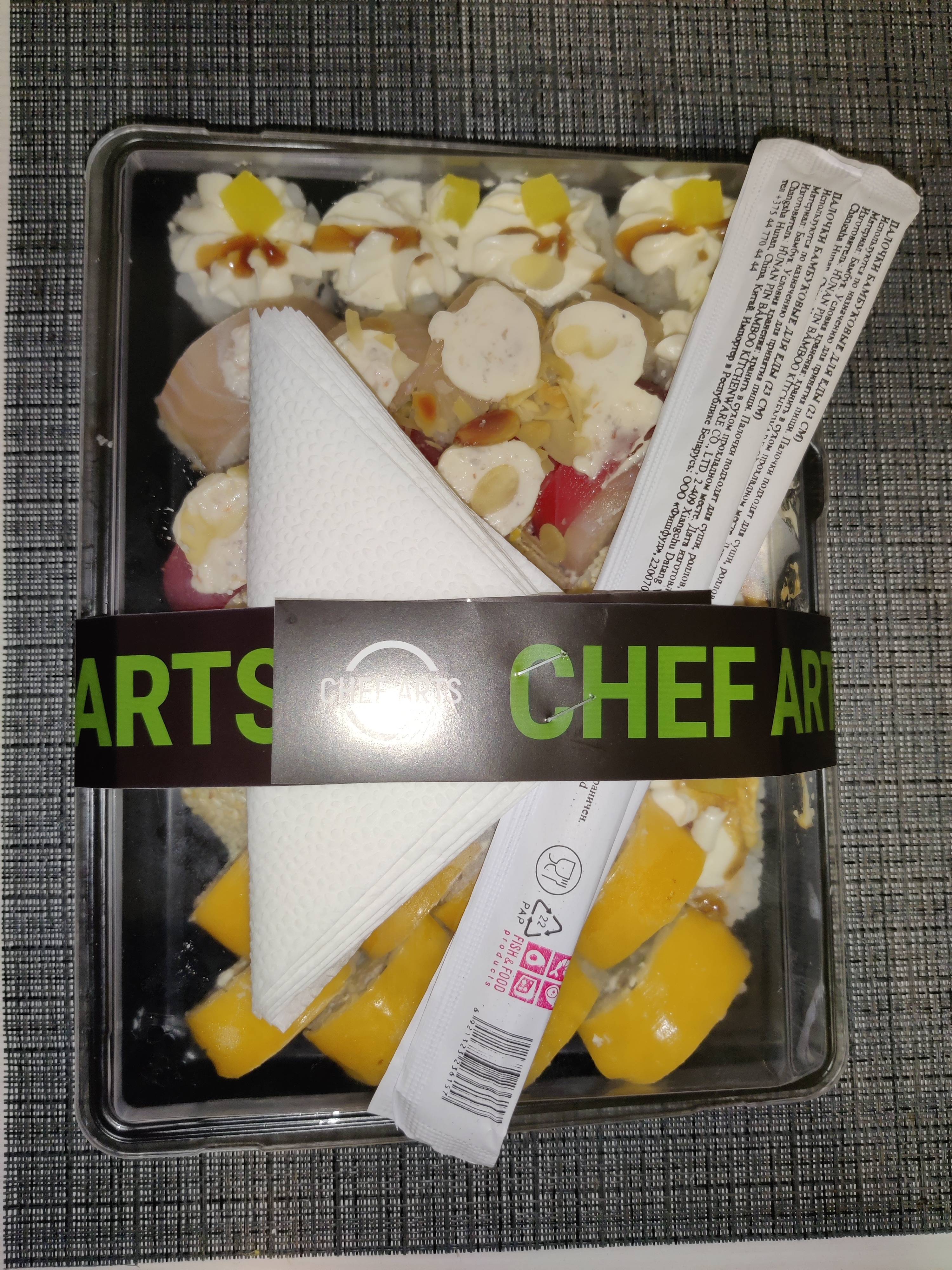 - На 1 суши-сет прилагается не более 4 комплектов палочек