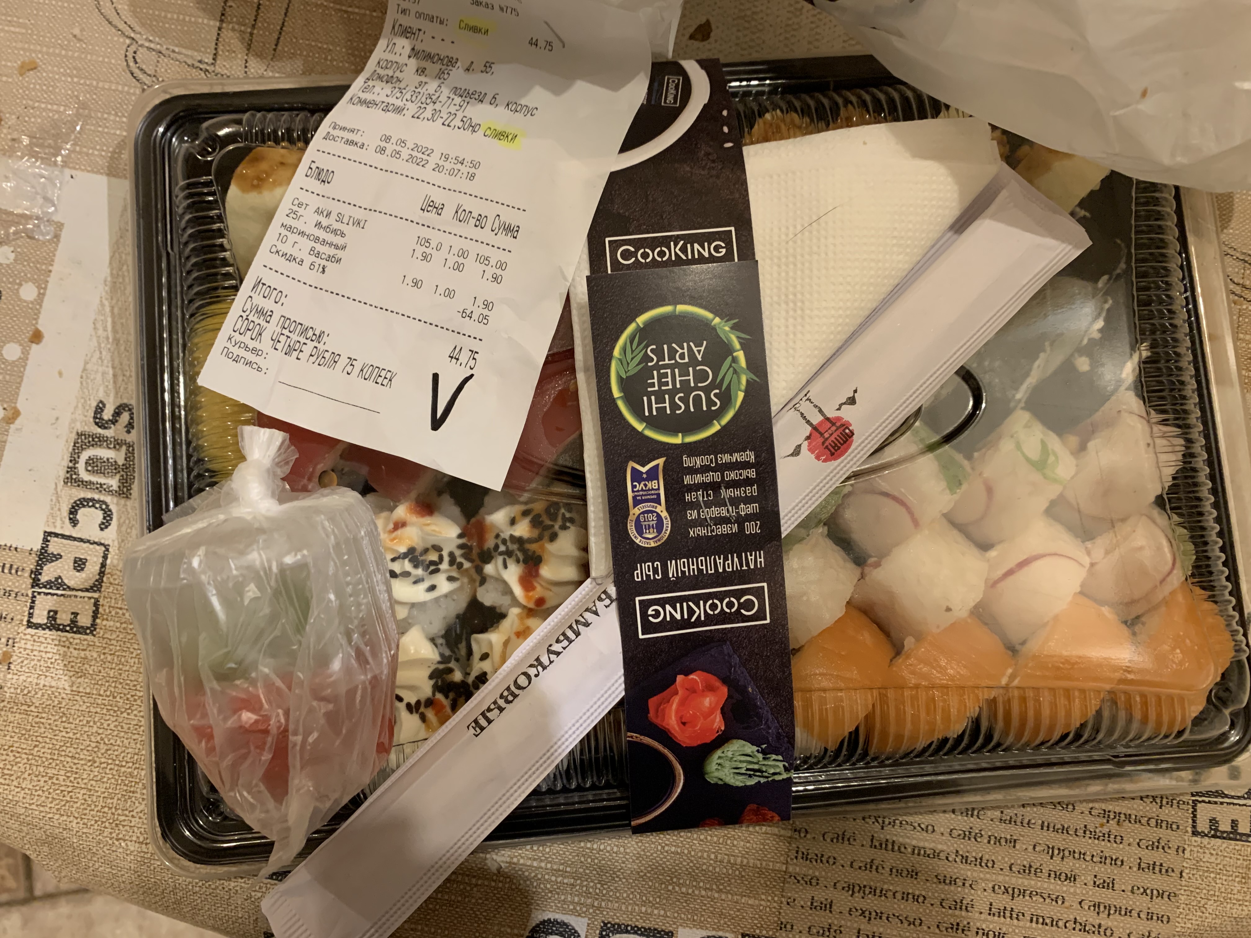 - На 1 суши-сет прилагается не более 4 комплектов палочек