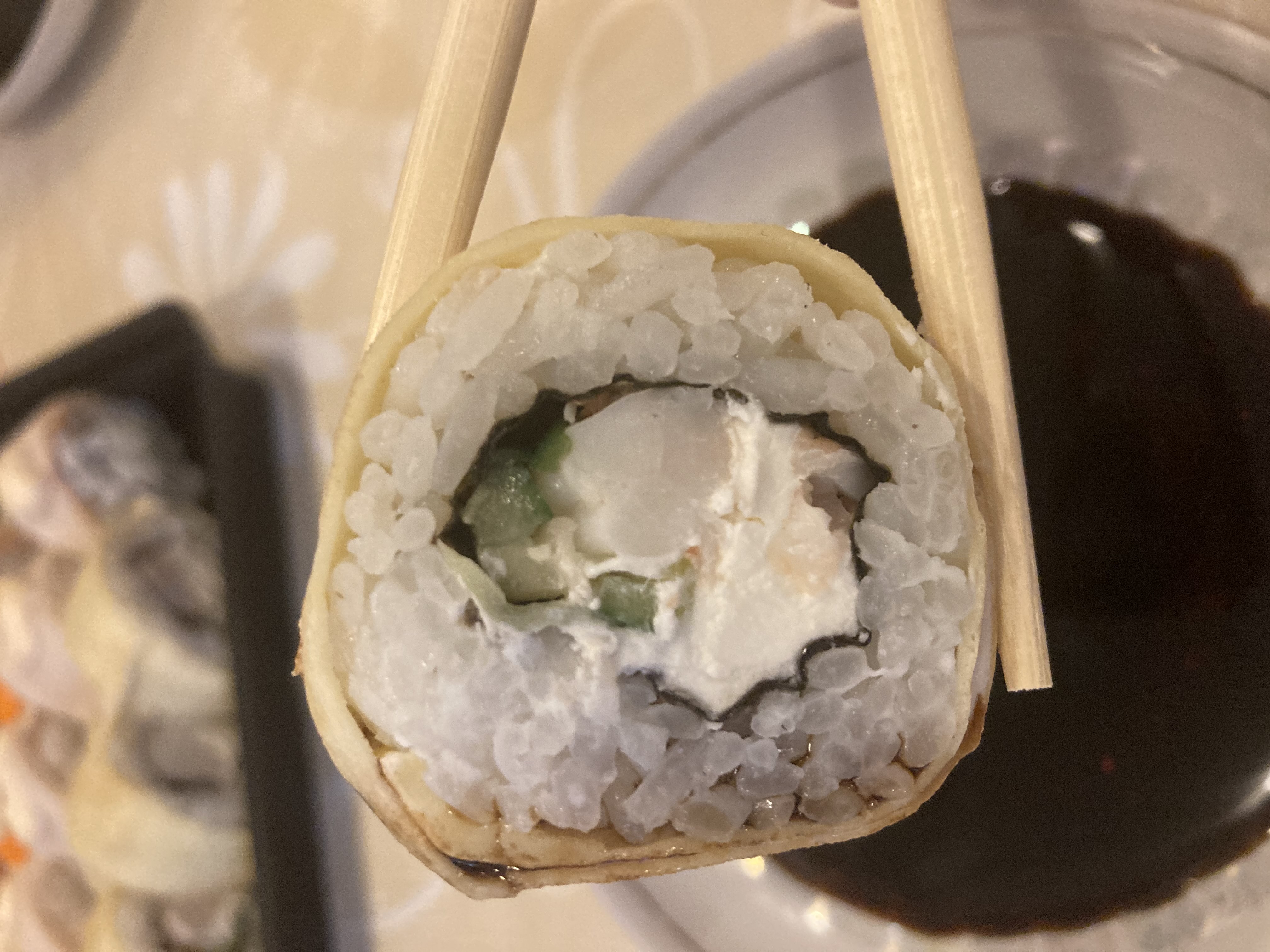 Сами по себе суши были скручены не плотно,разваливались((
