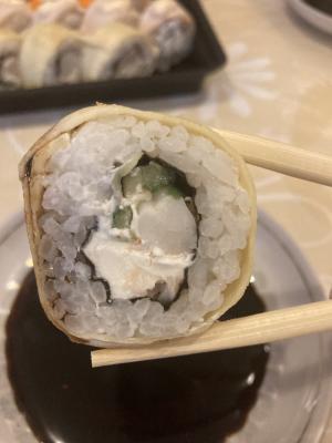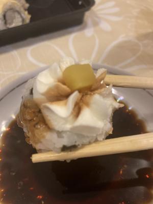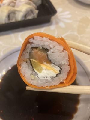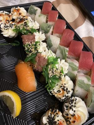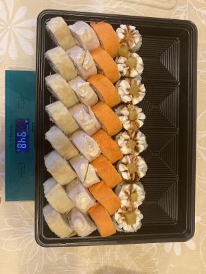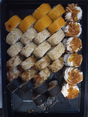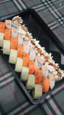 Суши обалдеть очень вкусные. Второй раз заказываю очень довольна и цены приемлемые. Единственное доставка долго осуществлялась.