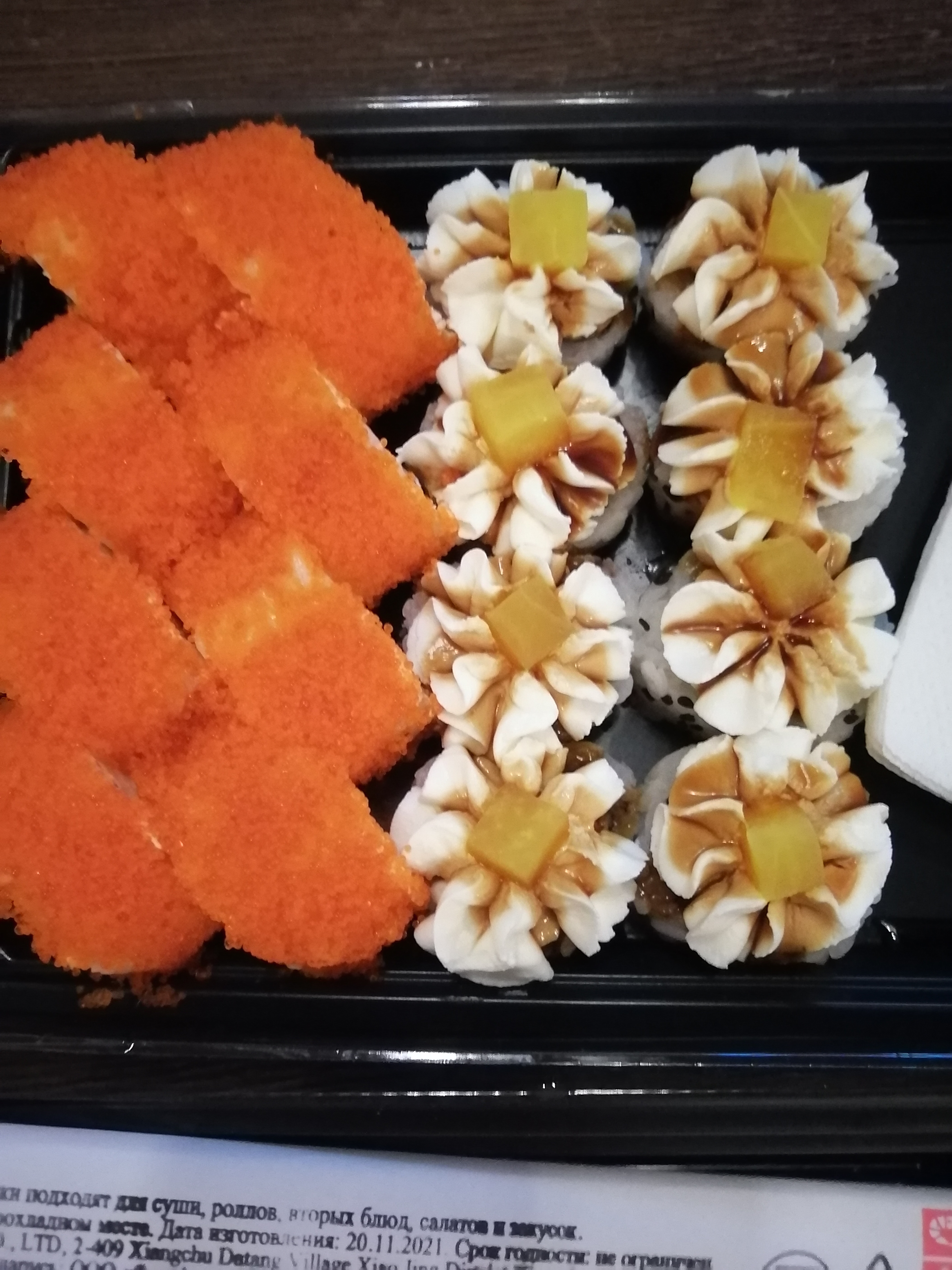 Доставка приехала вовремя, еда вкусная, брали сет Касабланка. Единственный минус, ролы фьюжен маки плохо скручены и разваливались. Сфотографировать до не успели, были голодны😁