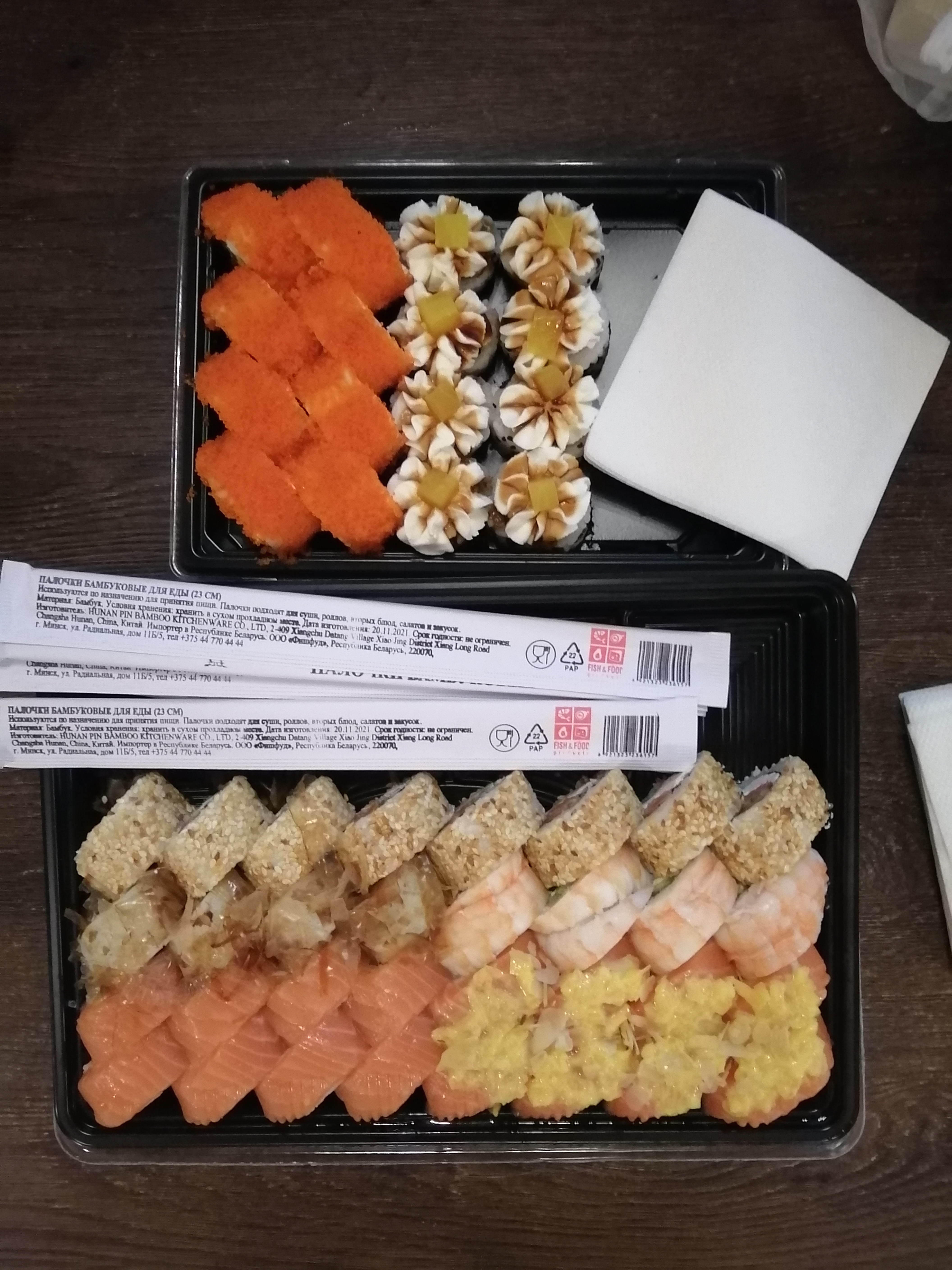 - На 1 суши-сет прилагается не более 4 комплектов палочек