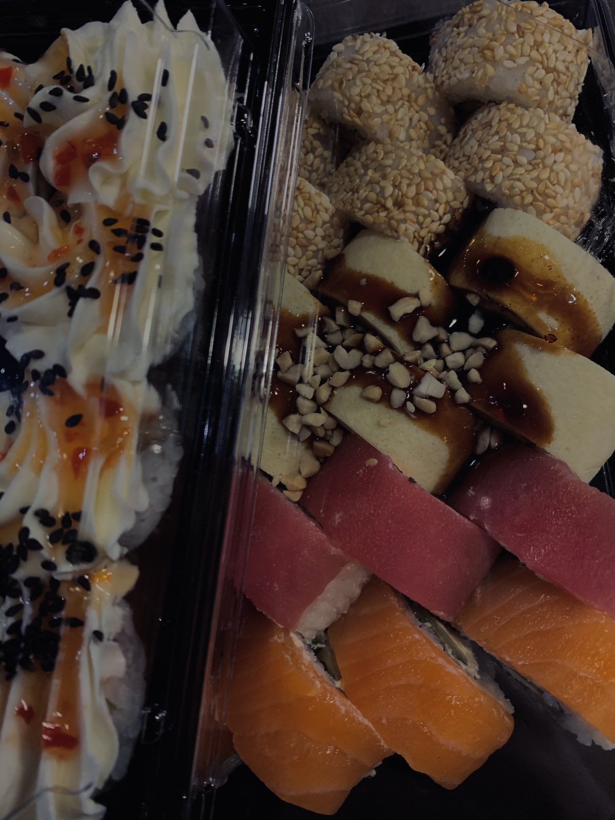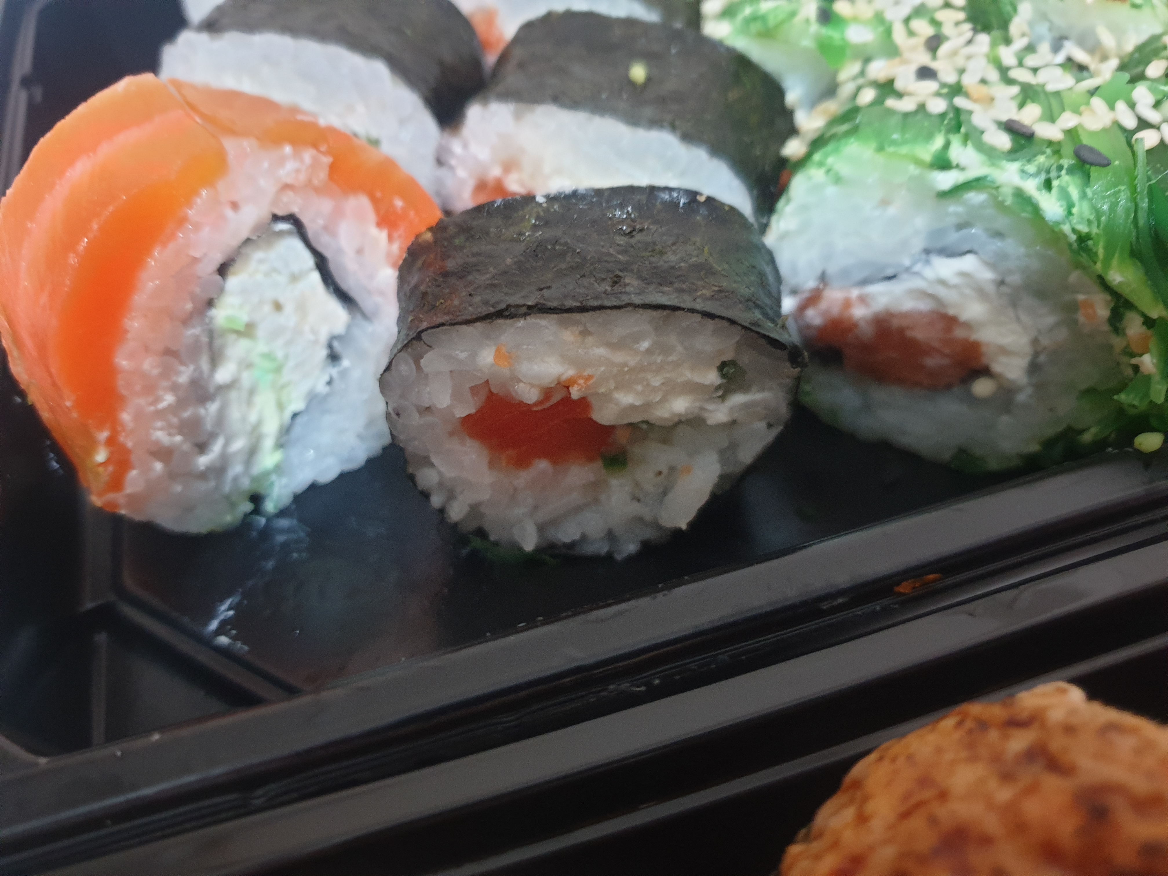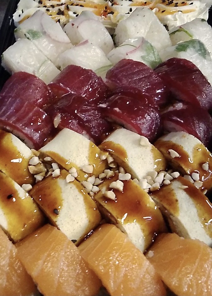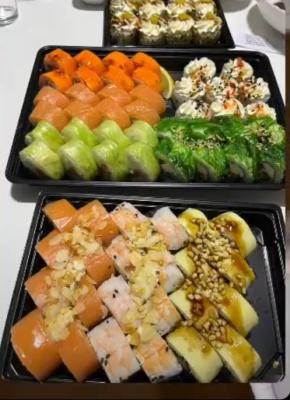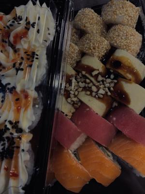 Суши супер! Крупные, вкусные, хорошо скрученные с оптимальным соотношением начинка-рис 👍 спасибо курьеру, который доставил суши раньше заявленного времени!