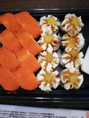 Суши очень вкусные и щедрые на начинку, рыбки много 😋 который раз заказываю и всегда всё на достойном уровне ❤️❤️❤️