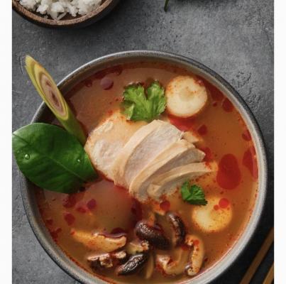 Том ям с курицей - разочарование, очень не советуем брать. Маленькие кусочки мяса, немного грибов и грустный листик - все наполненние.