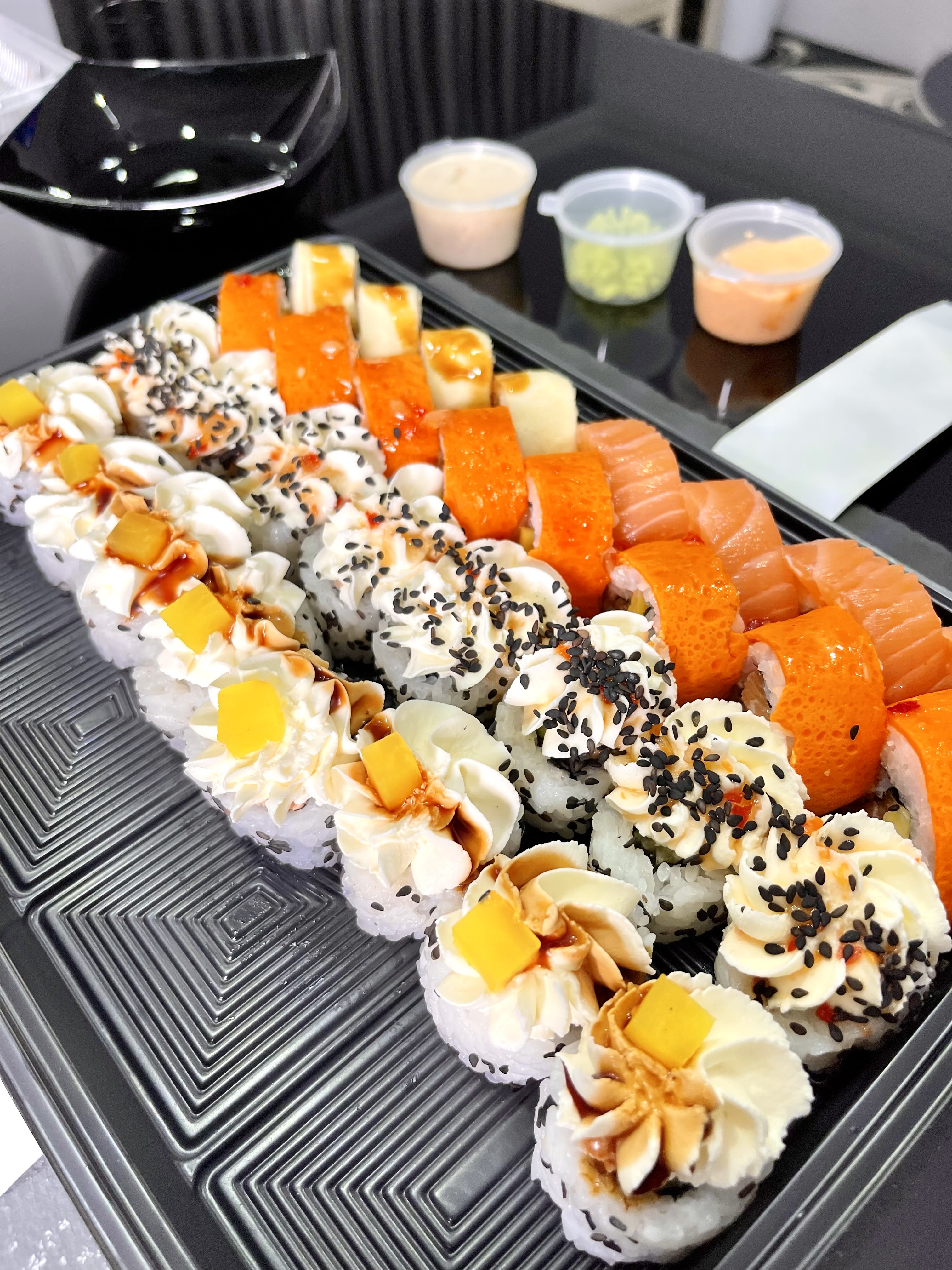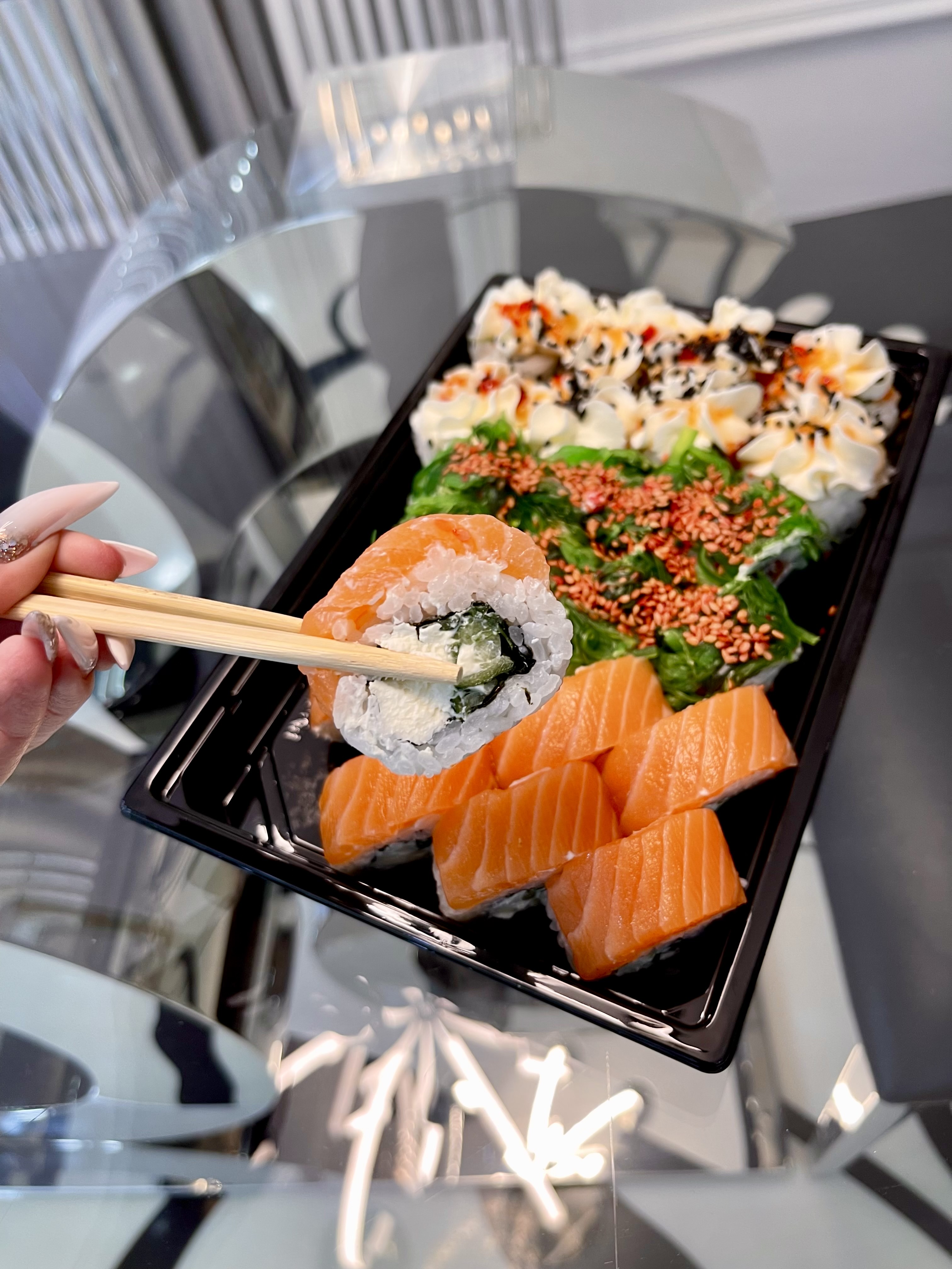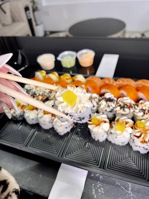 - На 1 суши-сет прилагается не более 4 комплектов палочек