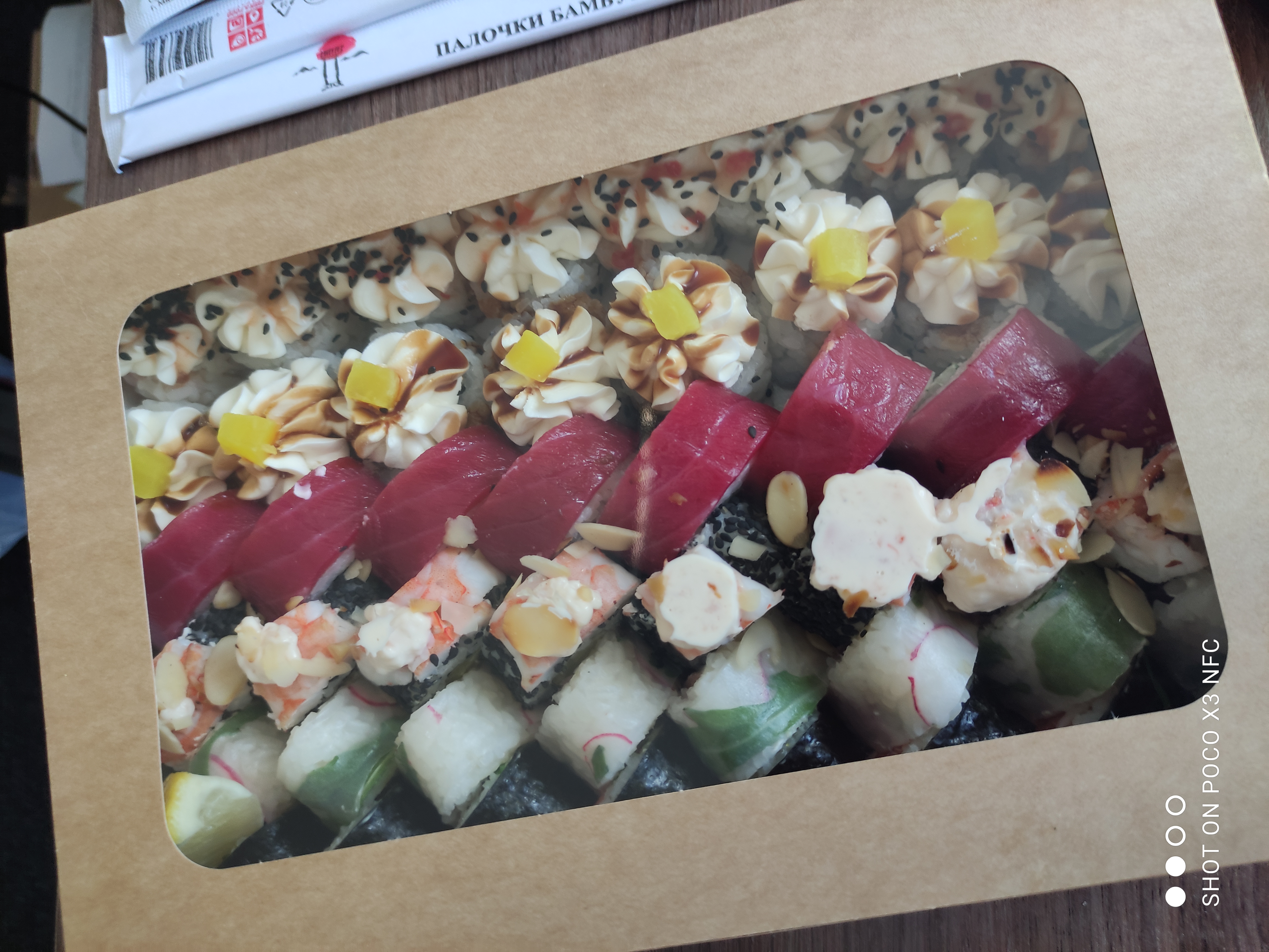 - На 1 суши-сет прилагается не более 4 комплектов палочек