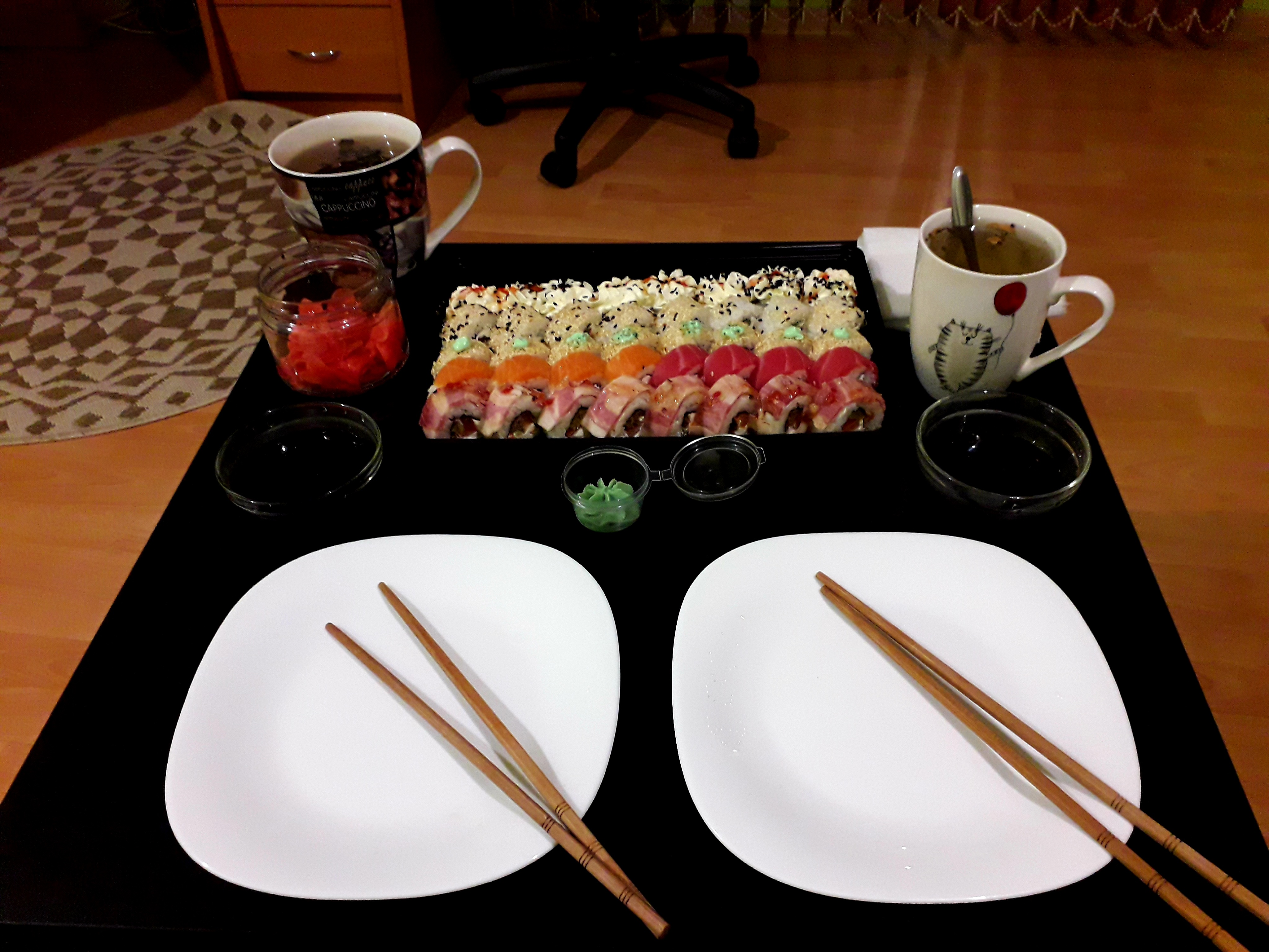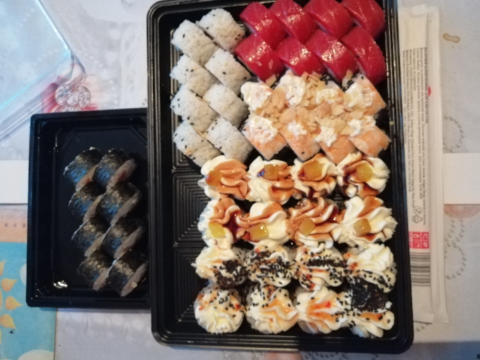 - На 1 суши-сет прилагается не более 4 комплектов палочек
