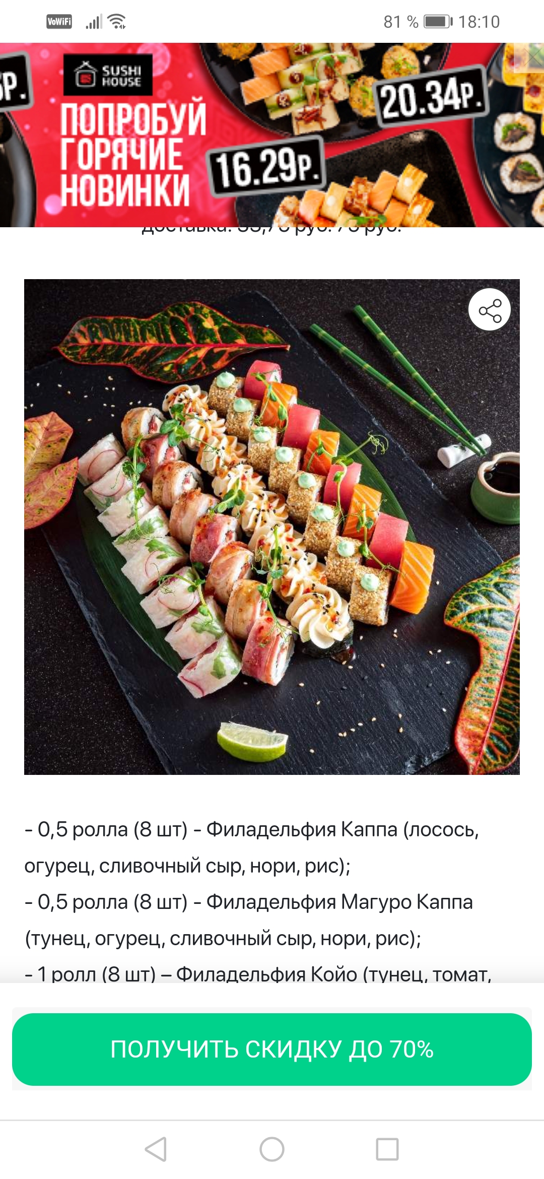 - суши-сеты: от 22 р. от 46 р.