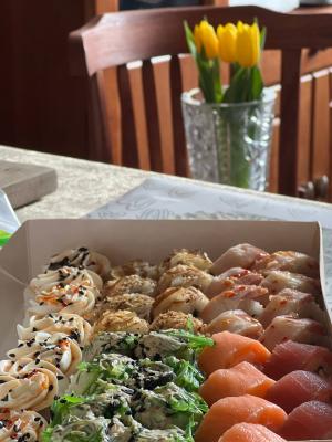 - На 1 суши-сет прилагается не более 4 комплектов палочек