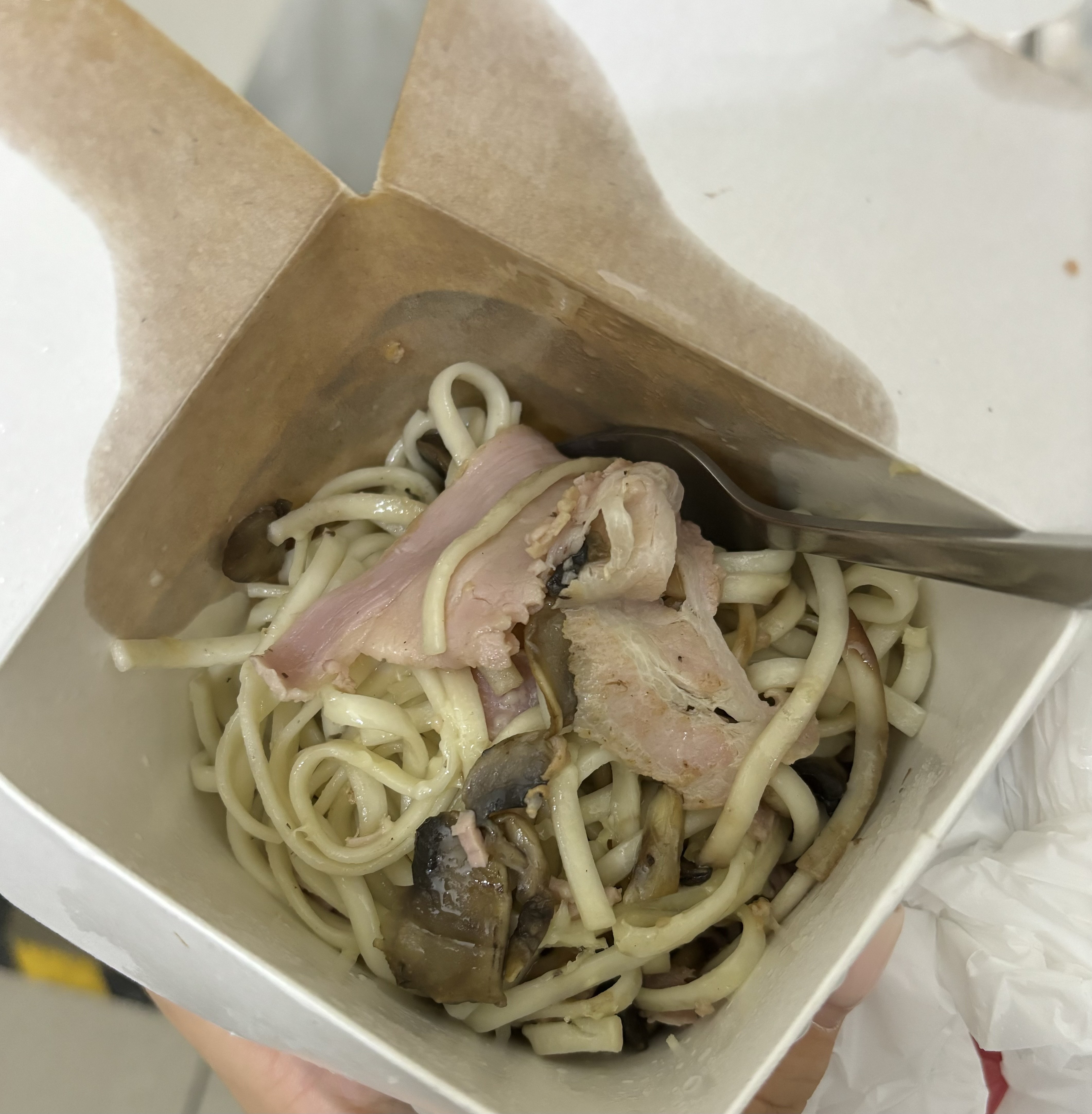 Заказала лапшу с грудинкой и соусом песто. Приехала просто лапша с шампиньонами, грудинка не обжарена, как на фото, соуса песто вообще не было, ни в лапше, ни отдельно в пакете, коробка так же не в лучшем состоянии) Фрай роллы остывшие. Полное разочарование