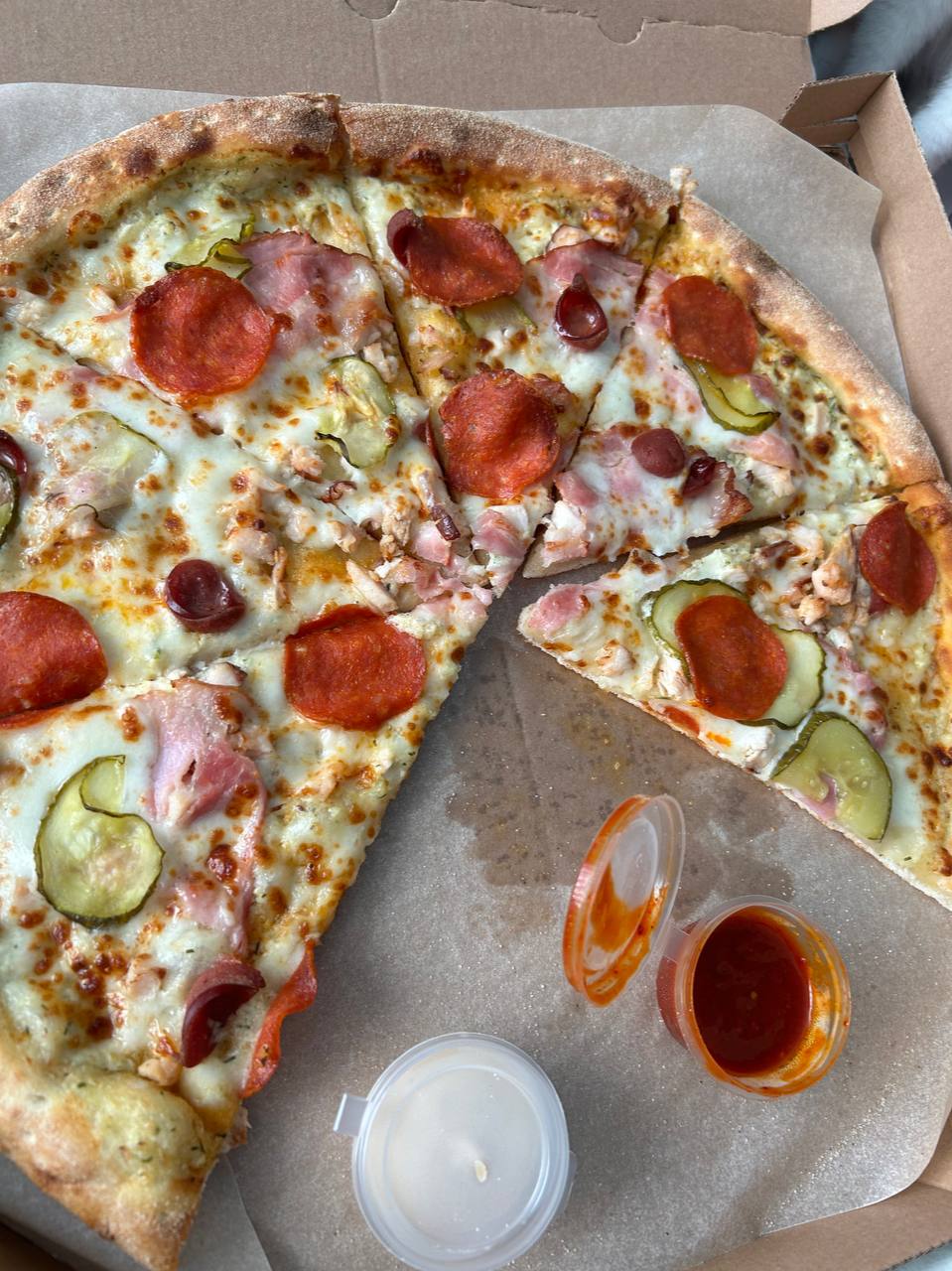 Каждые выходные с вашей пиццей. Супер мясная, как всегда на высшем уровне, а вот пряный цыпленок приятно удивил, была идеальная. Спасибо 😍