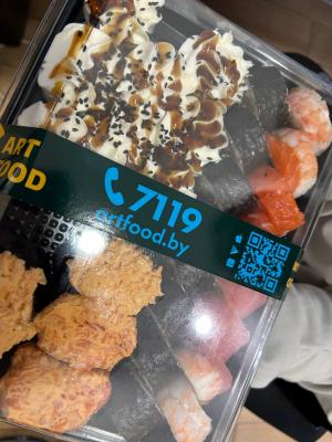 Отличные суши, всегда свежие! Начинки много! Доставка всегда приезжает вовремя и даже иногда раньше!Всегда заказываем здесь и останемся Вашими постоянными клиентами! Спасибо, Art Food!!!
