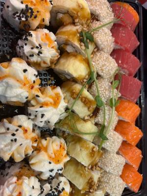 Заказ делали на обед, собрали свой сет из роллов и гунканов. Заказ привезли без опозданий. К логистике вопросов нет. Всё было вкусным. Рекомендую!