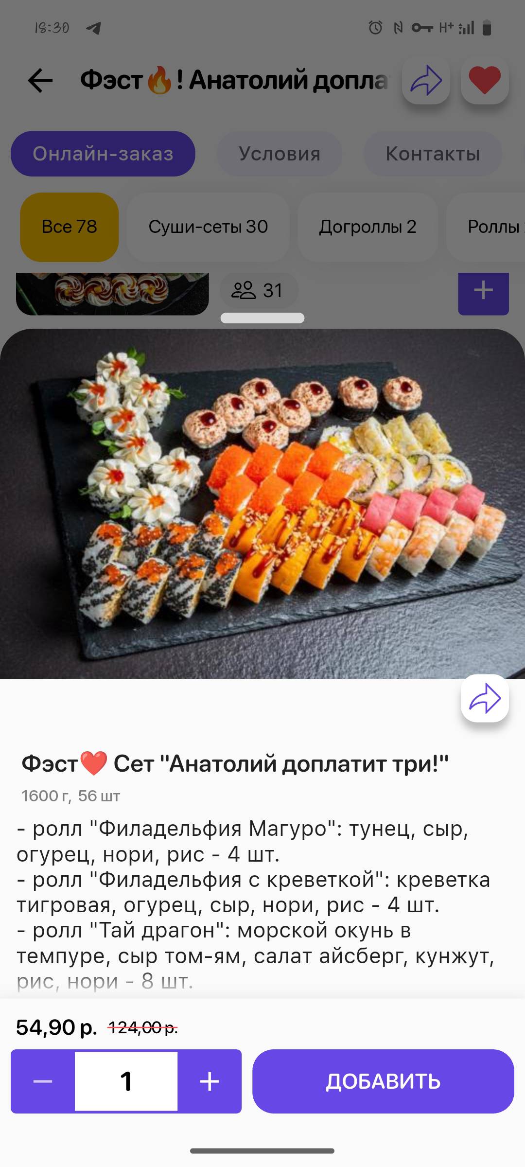 - сет "Анатолий доплатит 2" (40 шт, 1190 г): от 34 р. 95 р.