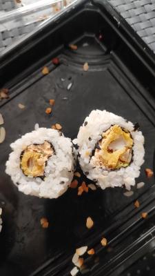 Состав: тунец, такуан, сыр, нори, рис, темпура
