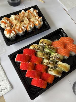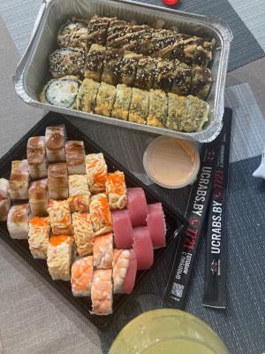 Заказали суши самовывозом на Притыцкого. Готовность от 30 мин! Много начинки, свежая вкусная рыбка! Суши с креветками где действительно есть креветка , а не одно название. В самое ❤️- аккуратная сборка заказа и дружелюбный персонал. Спасибо, очень вкусно! 😍