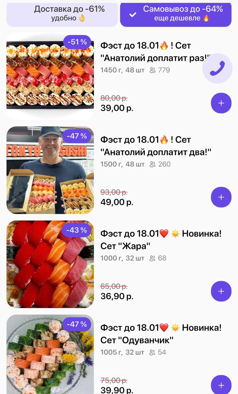 🔥Фэст по 18.01! Промокод дает право на скидку до 64% на суши-сеты от "TOKYO SUSHI"