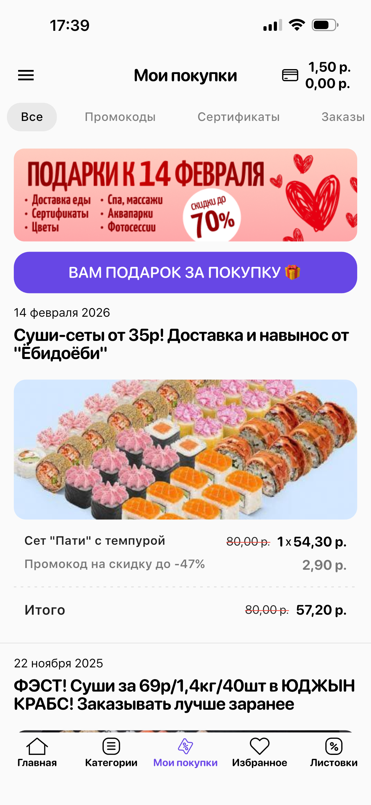 - *Промокоды от 19 коп. по подписке