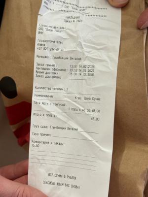 - Ориентировочное время доставки - 45-90 мин. При большом количестве заказов время ожидания доставки может увеличиваться