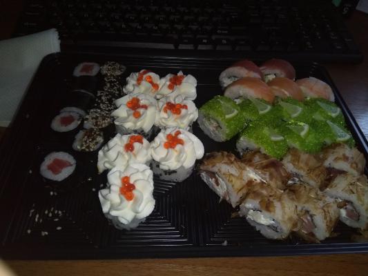 Хорошие суши, мне понравились. Доставили в течении часа в воскресенье.