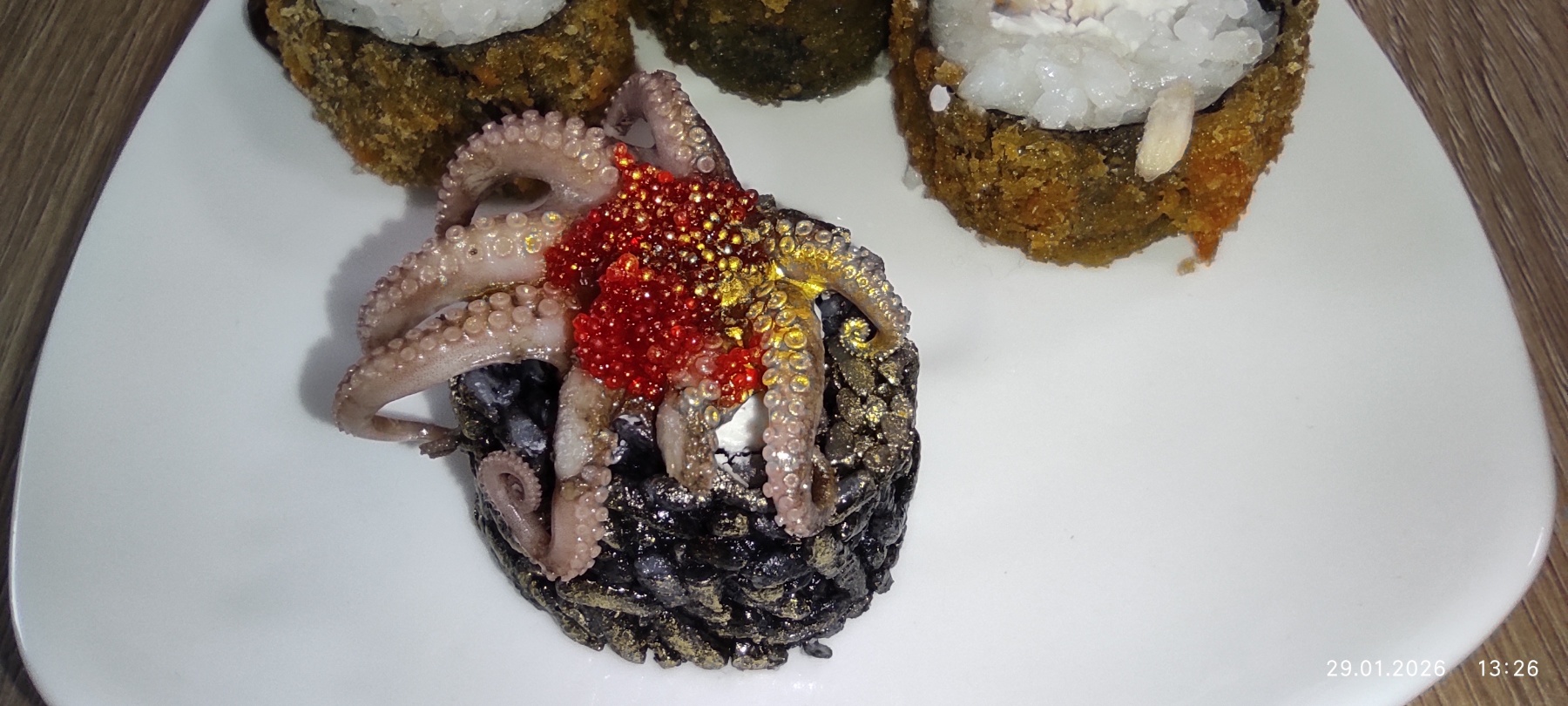 Сушисты отправляют роллы в гриль/фритюр всего на 1 минуту,чтобы подплавить сырную шапочку или создать хрустящую корочку темпуры.