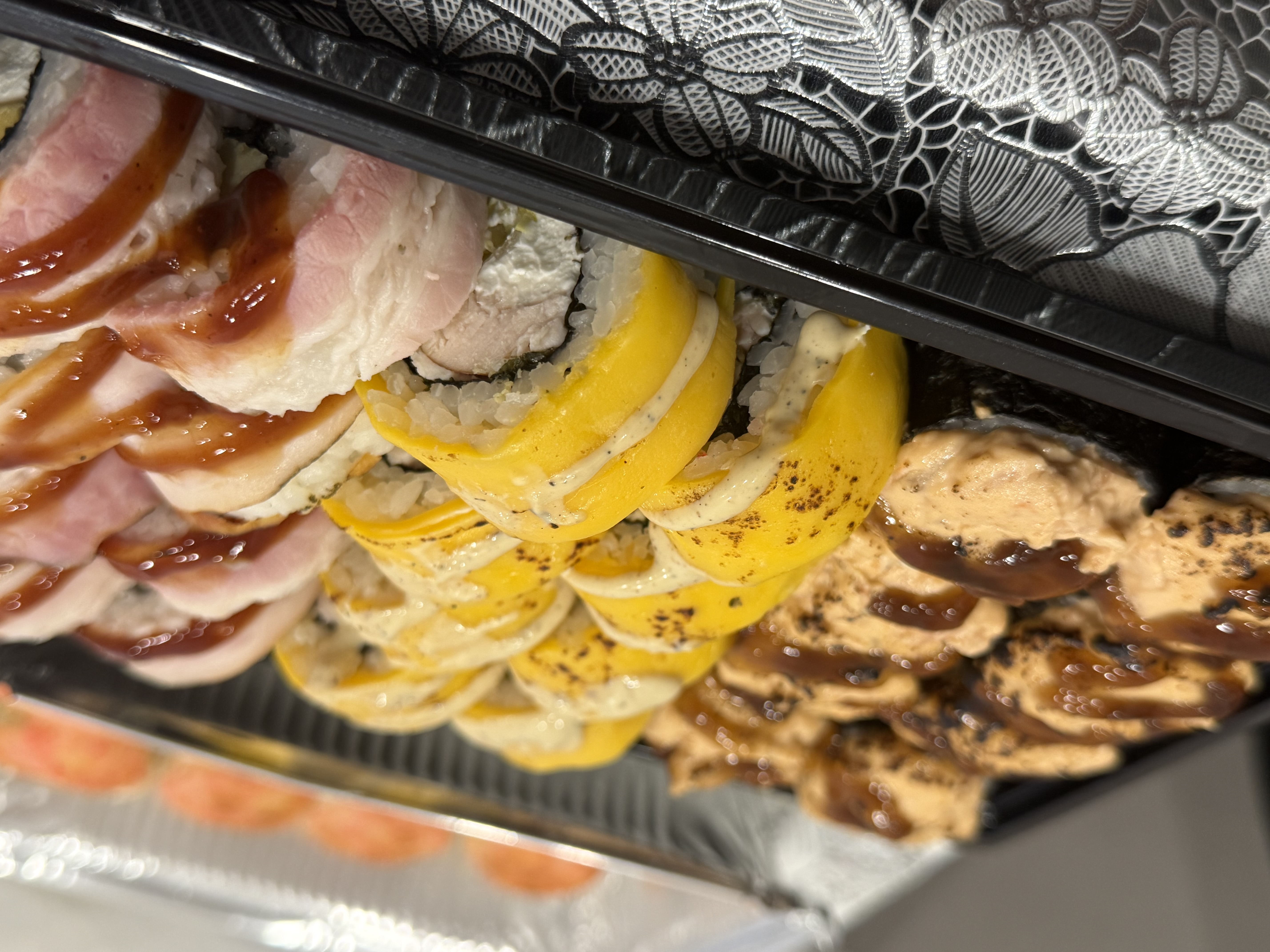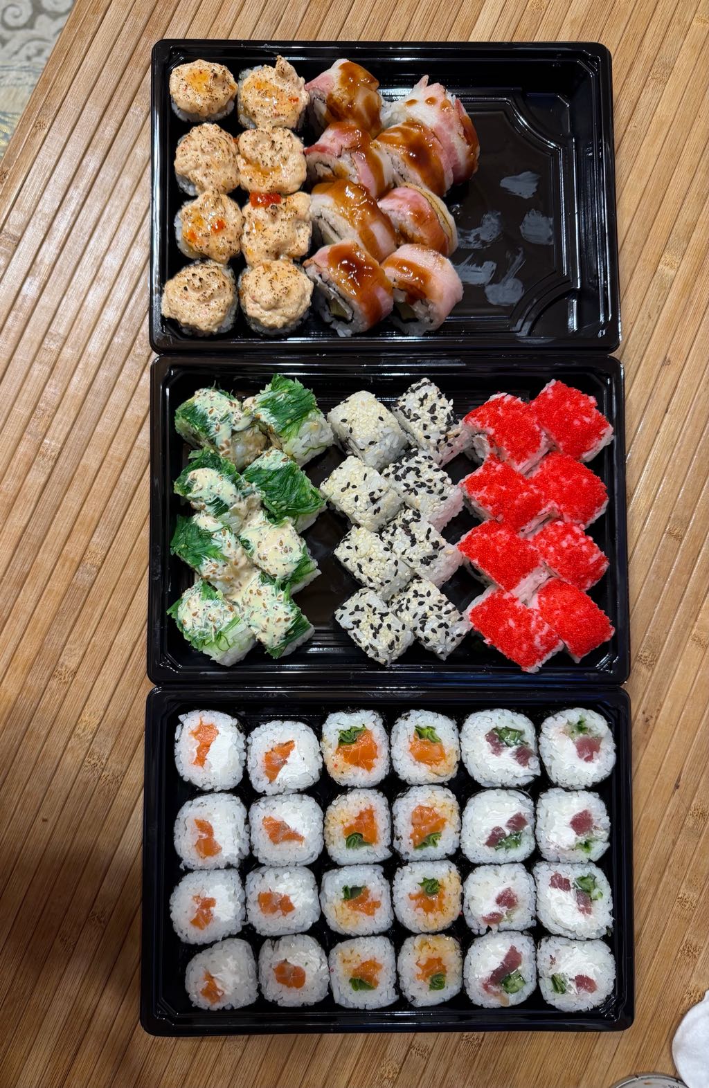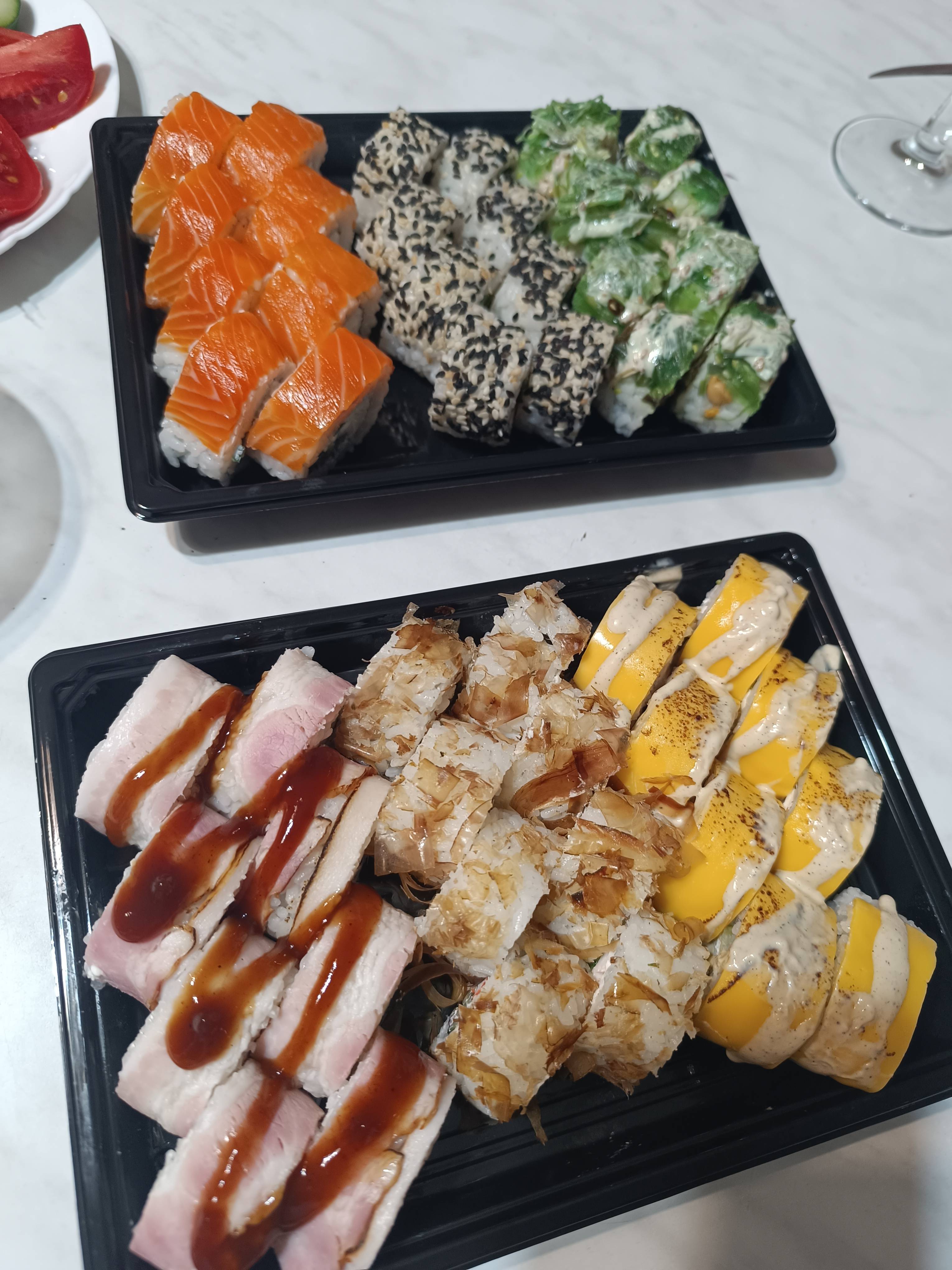 Заказ делали первый раз. Сказать, что удивлена вся семья это ничего не сказать. Суши сет Гриль, просто обалденные Оценка 10из 10!!!Во - первых, отмечу, все продукты свежие, рис сварен прекрасно, не сухой, как во - многих заведениях, начинки (творожный сыр, в достаточном количестве и креветок, ароматный бекон, по бокам отличная посыпка(кунжут). Сочетание соусов, на всех сушах оригинальное. У нас был самовывоз, аромат в машине - слюной можно подавиться, по приезду, поняли, что не прогадали.. Очень надеемся, что последующие заказы останутся на том же уровне!!!!