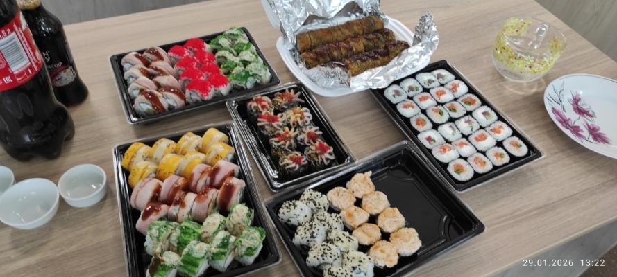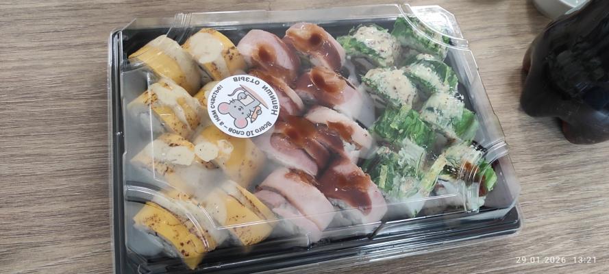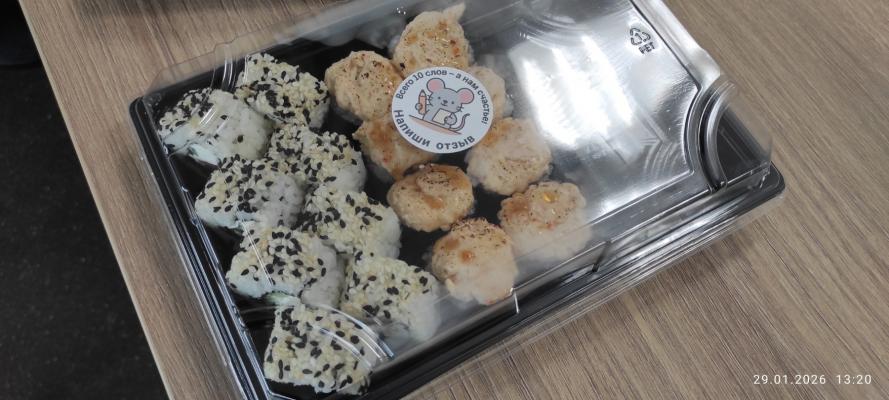 Спасибо, все очень вкусно! было очевидно, что на 14.02 надо заказывать заранее, заказала заранее- все было готово вовремя, суши вкусные. Жаль, что горячие ролы были не доступны, но закажем их просто на другой повод