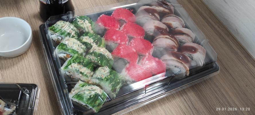 Уже не первый раз заказываем суши у этой фирмы,удивляют интересными сочетаниями продуктов, все суши вкусные, уплетаются в один присест👌