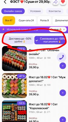 - Промокод дает право на скидку до 56% на суши-сеты от "THE СУШИ"