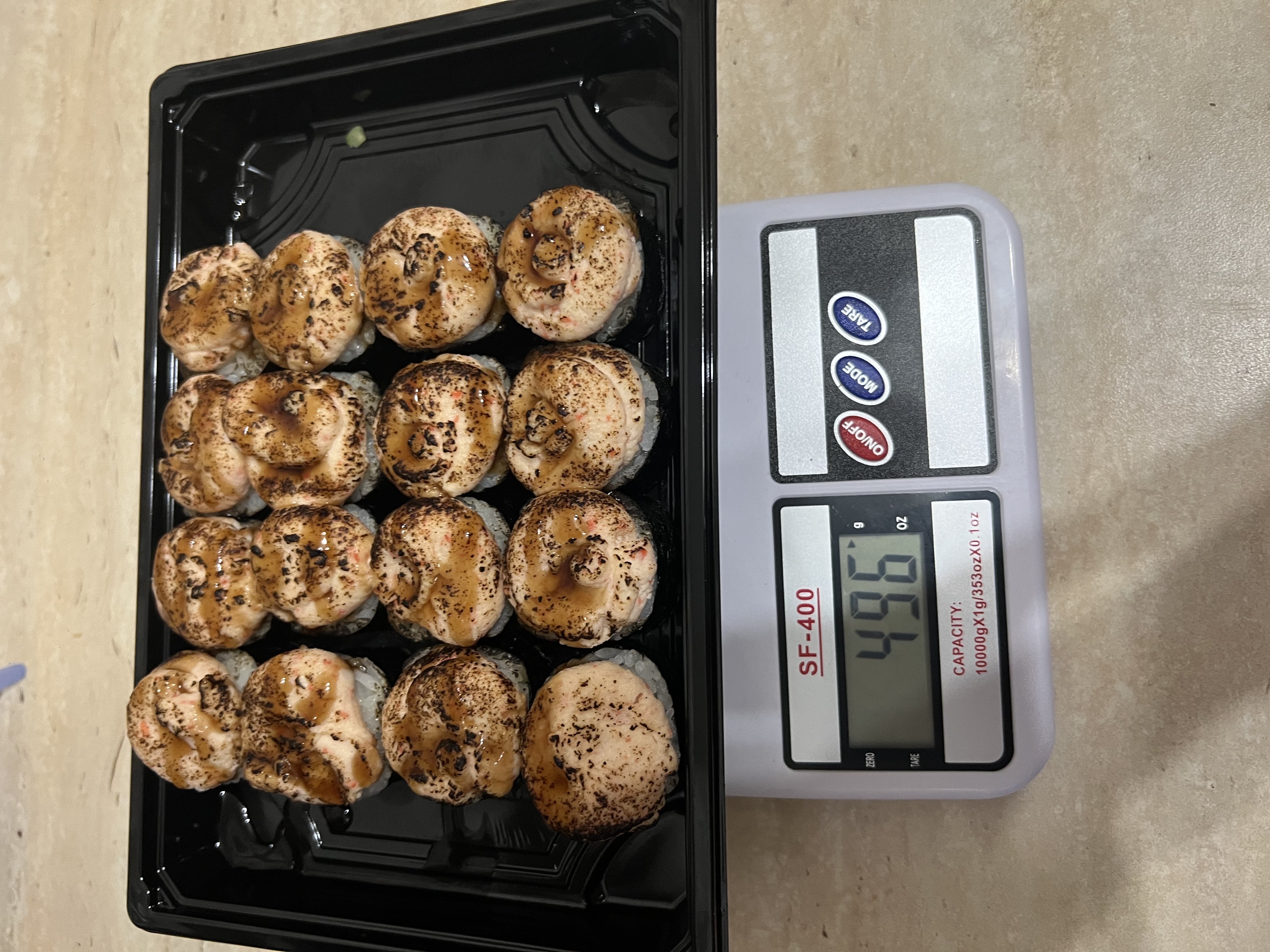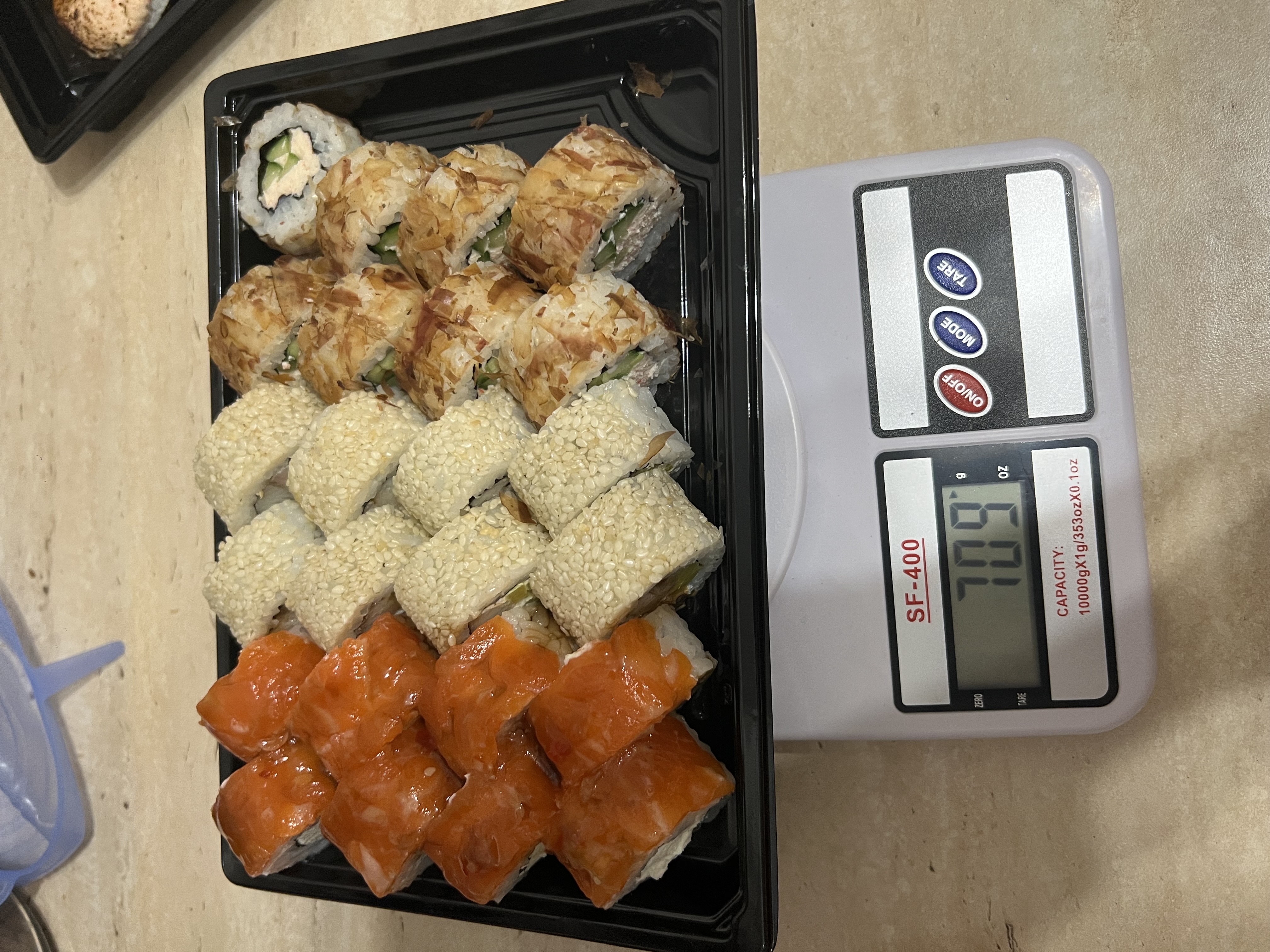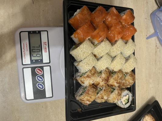 Суши вкусные, по весу все хорошо, рис в некоторых немного разваливался, но не критично