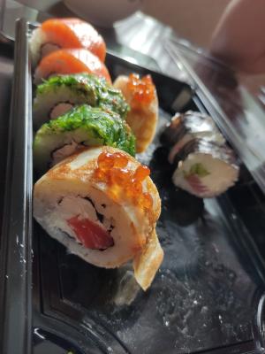 Сделал заказ с самовывозом. Всё было готово точно ко времени. Суши отличные. Всем понравились. Украсили хороший пятничный вечер.