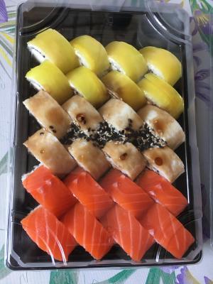 Заказывал за ранее на 7 марта 16:00 самовывозом. При заказе шёл бесплатный сет из 8 суш. Читал в отзывах других заведений, были проблемы с праздничными и предпраздничными заказами. Но тут все бомбово🔥🔥🔥 забрали во время, сами суши большие соотношение риса и начинки- 8/10. Суши свежие. Спасибо большое, были приятно удивлены и приятно дополнили праздник!!!