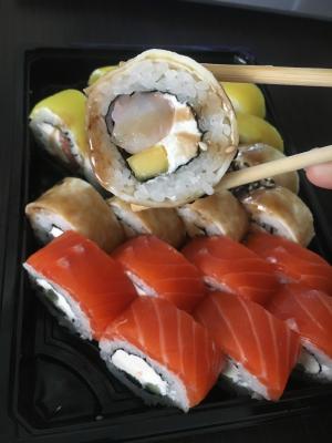 Хоть было и 14.02, но не подвели. Привезли вовремя. Суши свежие. Начинки достаточно (хотя у них раз на раз не приходится) Качество рыбы нормальное. В общем вкусно)) Особая благодарность вежливому и аккуратному курьеру!