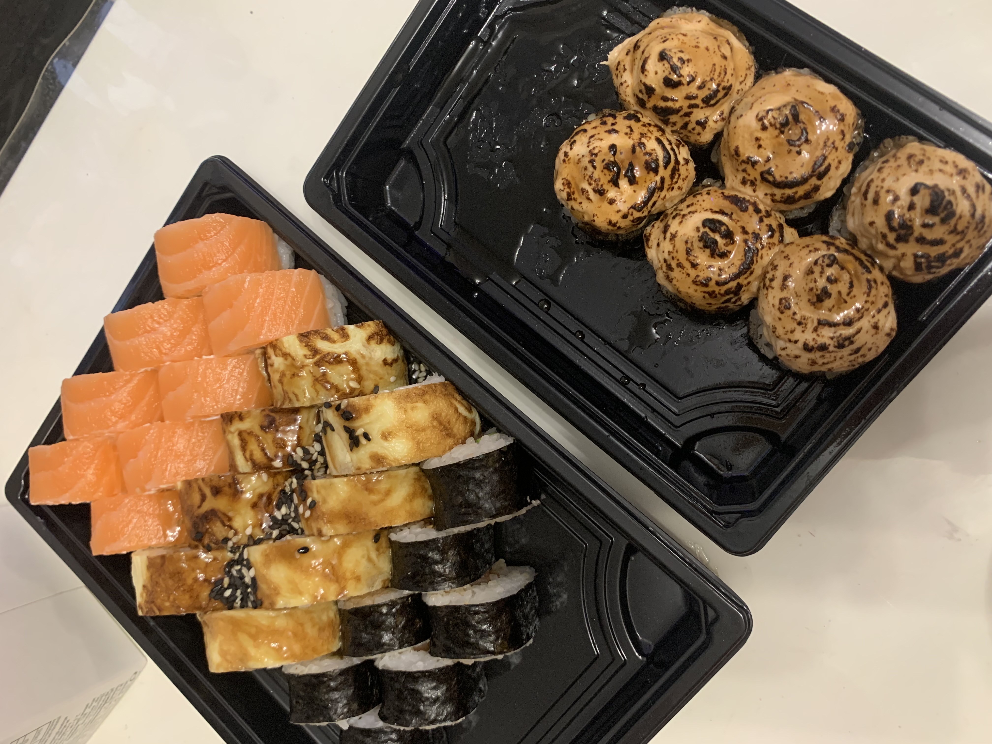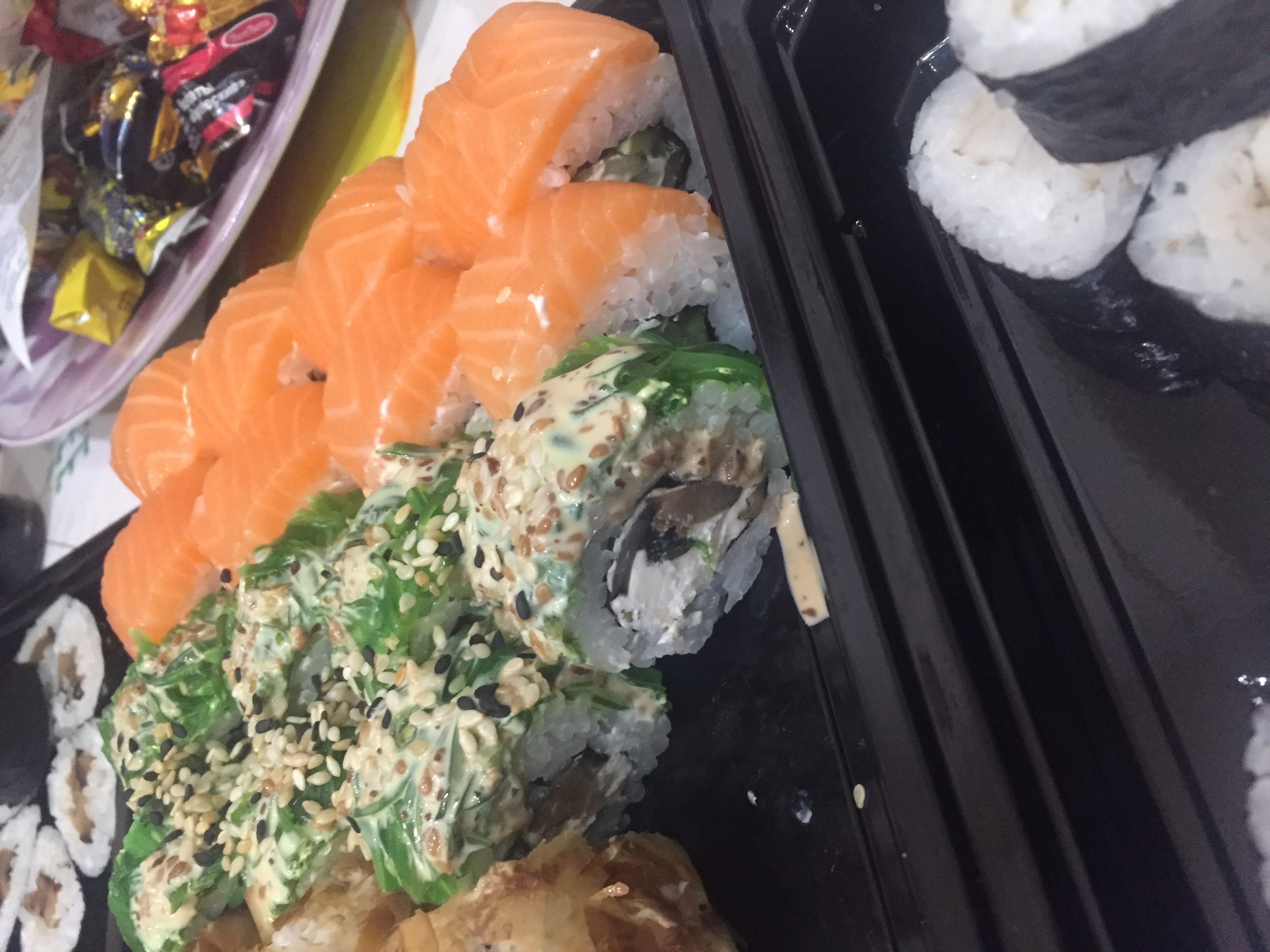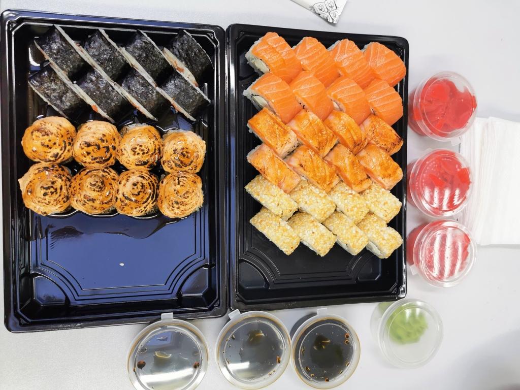 Упершыню паспрабавалі сусі ад гэтага вытворцы і былі прыемна ўражаны. Замовілі сэт Аляска + порцыю Спайсі Кунсей на самавываз, атрымалі яшчэ і квэст у падарунак, бо адшукаць у цемры пункт быў яшчэ той чэлендж)) На смак сусі выдатныя, вялікія кавалачкі ролаў, ідэальны рыс, якасныя морапрадукты. Ніякіх пабочных прадметаў не сустрэлі.