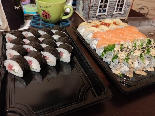Самые не вкусные суши,которые я ела. Разваливаются, палочками взять невозможно,рыба вообще не похоже на рыбу ни по цвету ни по вкусу!  Оператор,который брал заказ очень неприятная, к тому же нет возможности оплатить по карте,хотя должно быть !Больше тут заказывать не буду и никому не рекомендую!