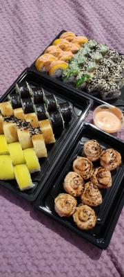 Вкуснятина! Свежайшие суши. Почти все сеты попробовали, ждём новинок!!! Из фаворитов отмечу сет Индиана и Мустанг. Очень нравиться здесь ролл опаленный с лососем. Много где его пробовали.
