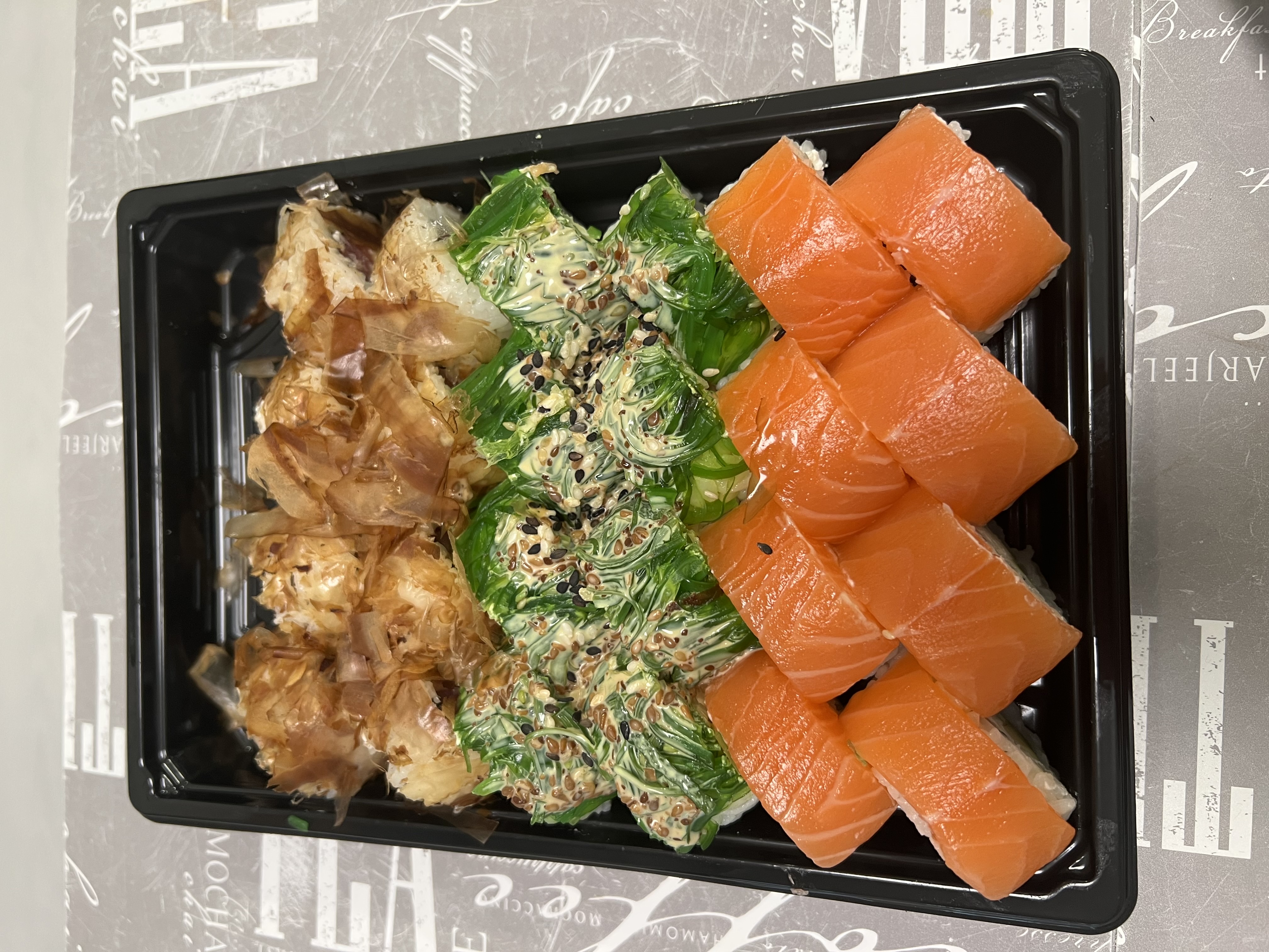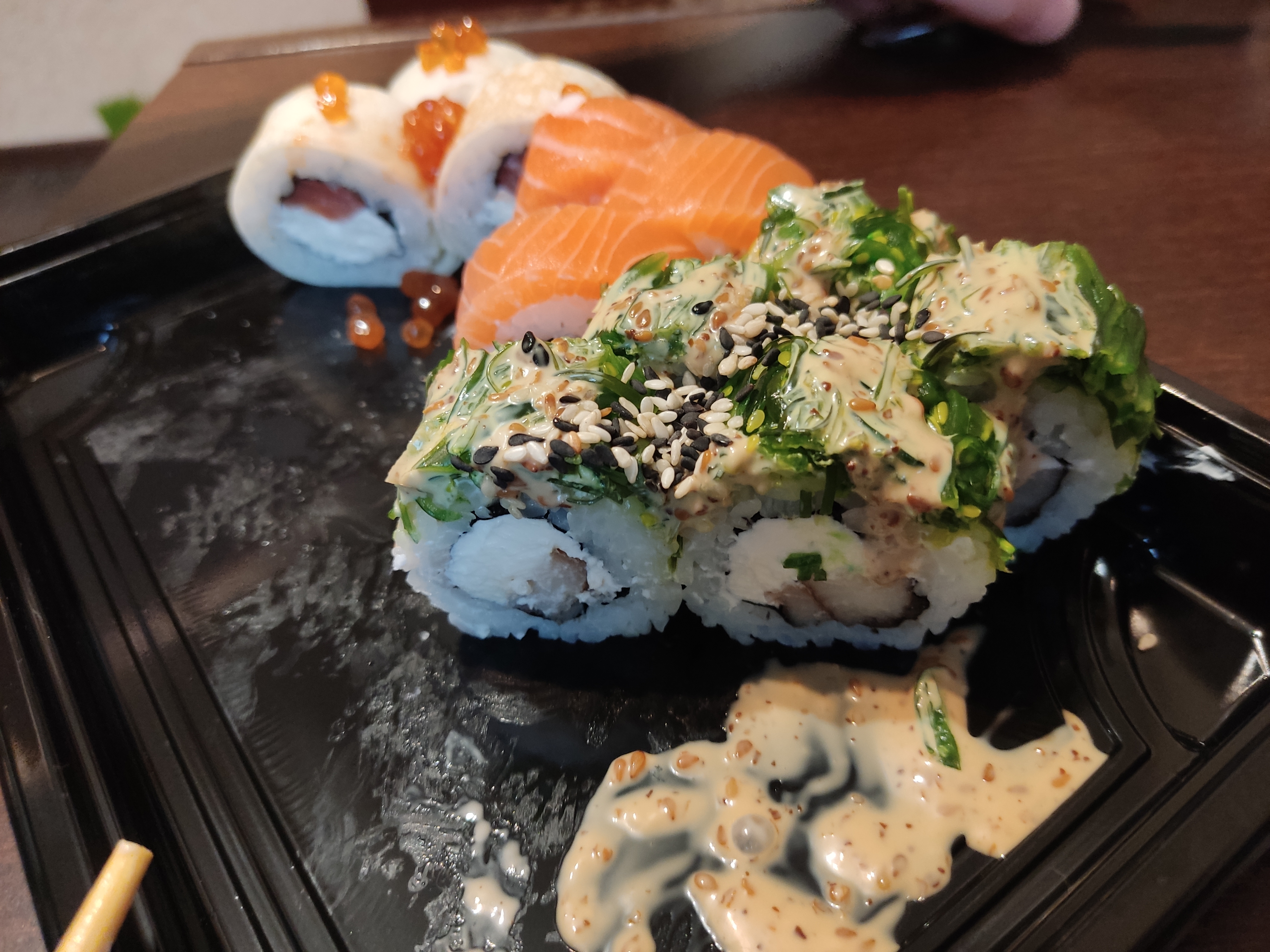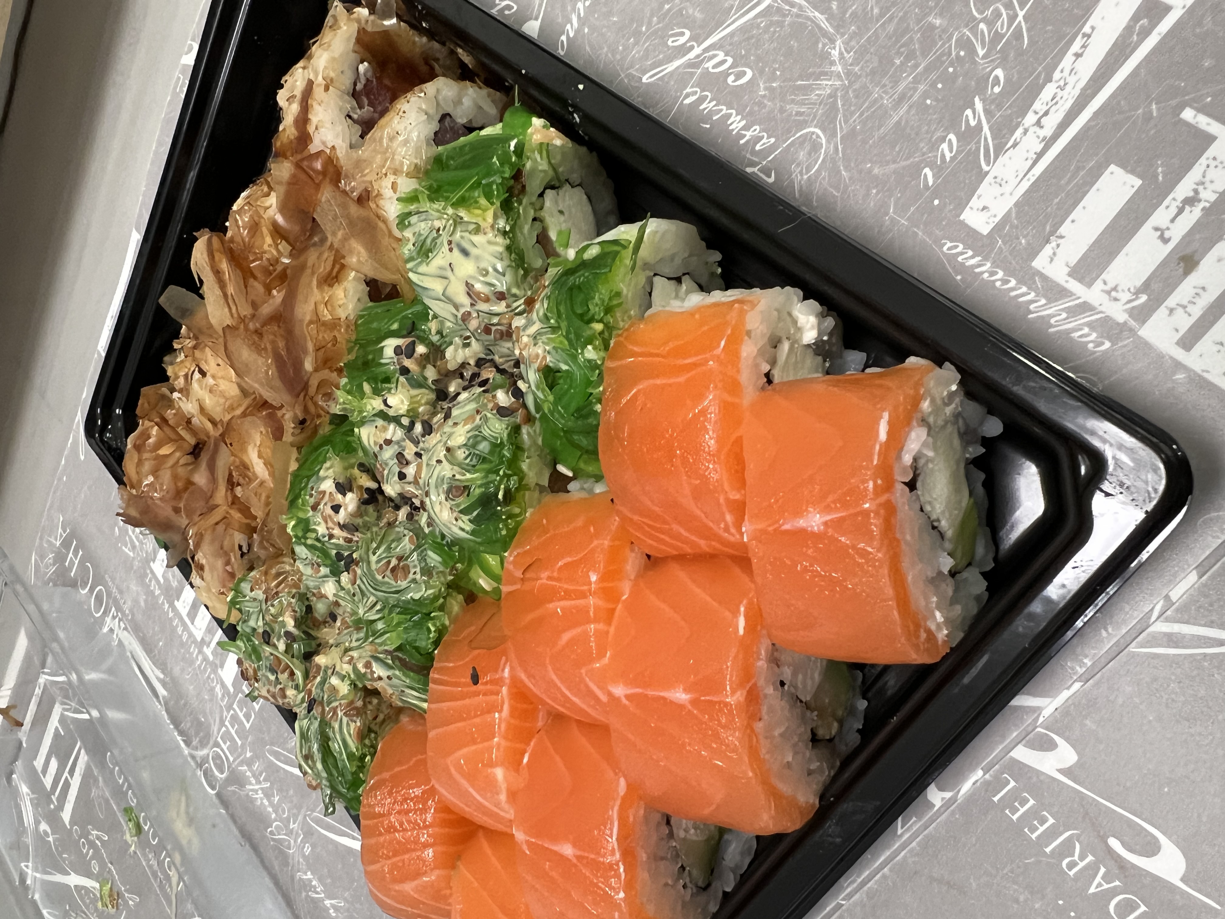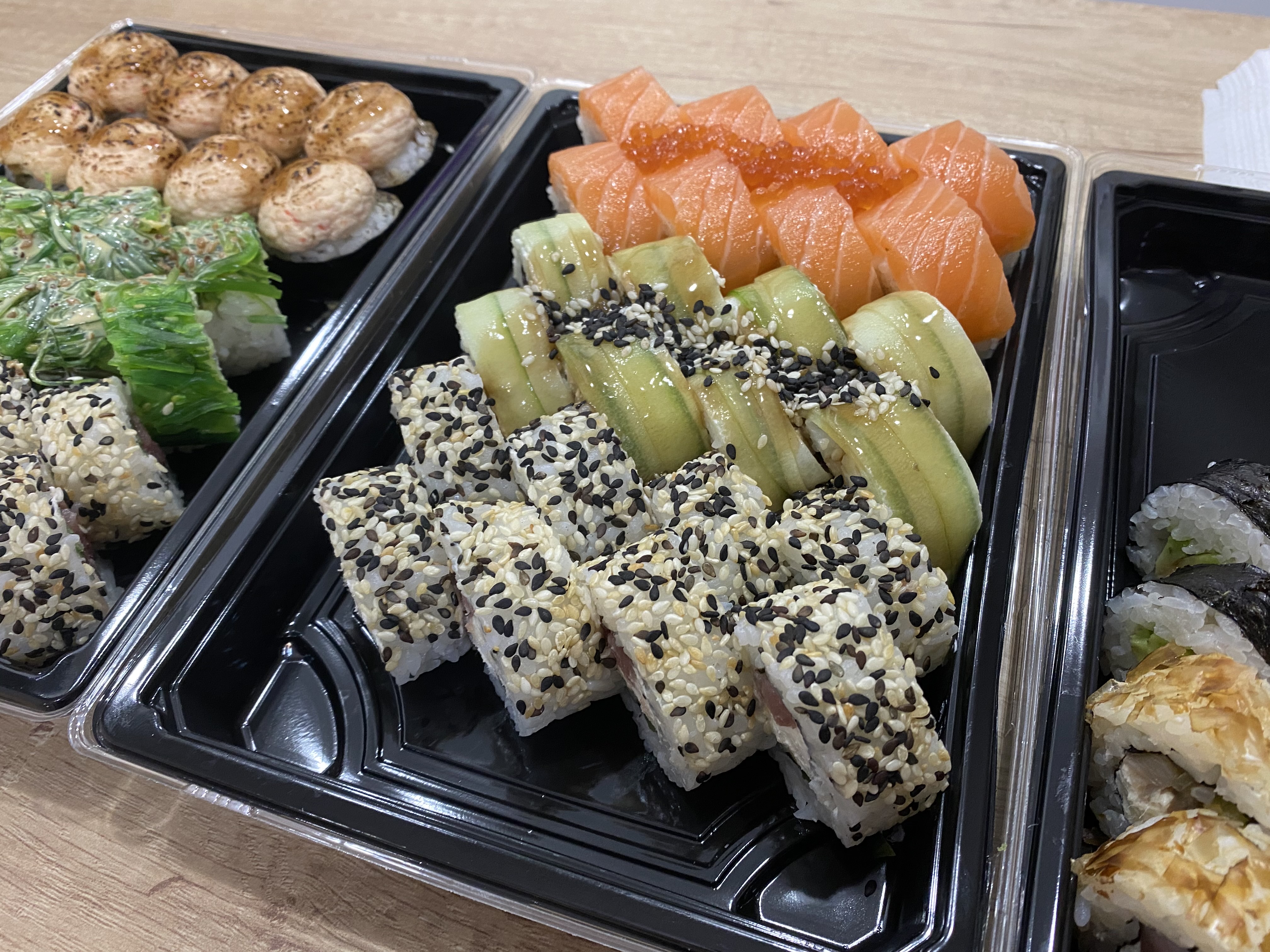 Отличные, свежие суши, с нормальным количеством рыбы. Вкусный кунжутный соус, острый васаби.
