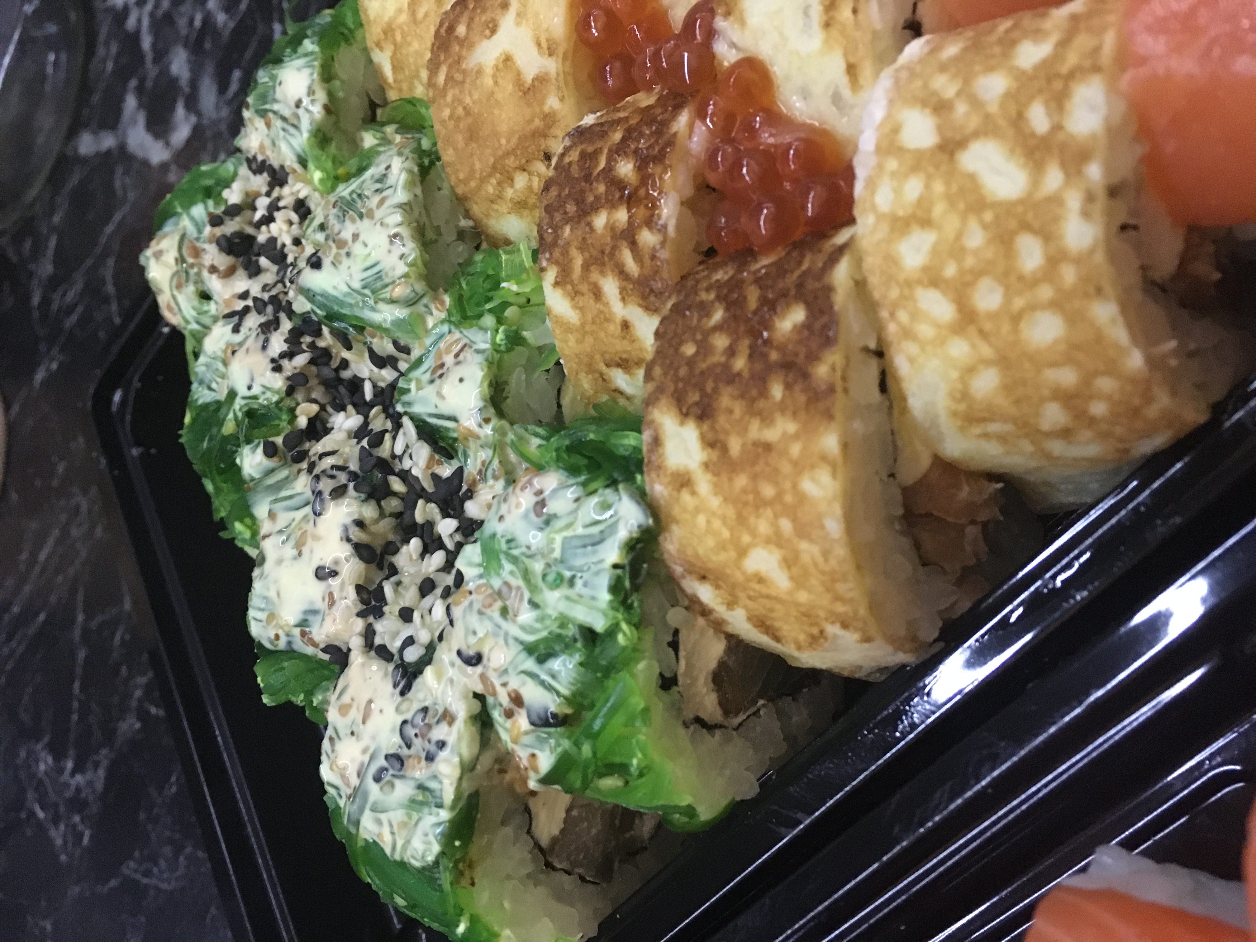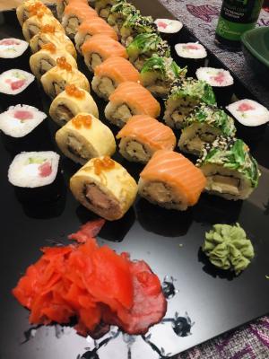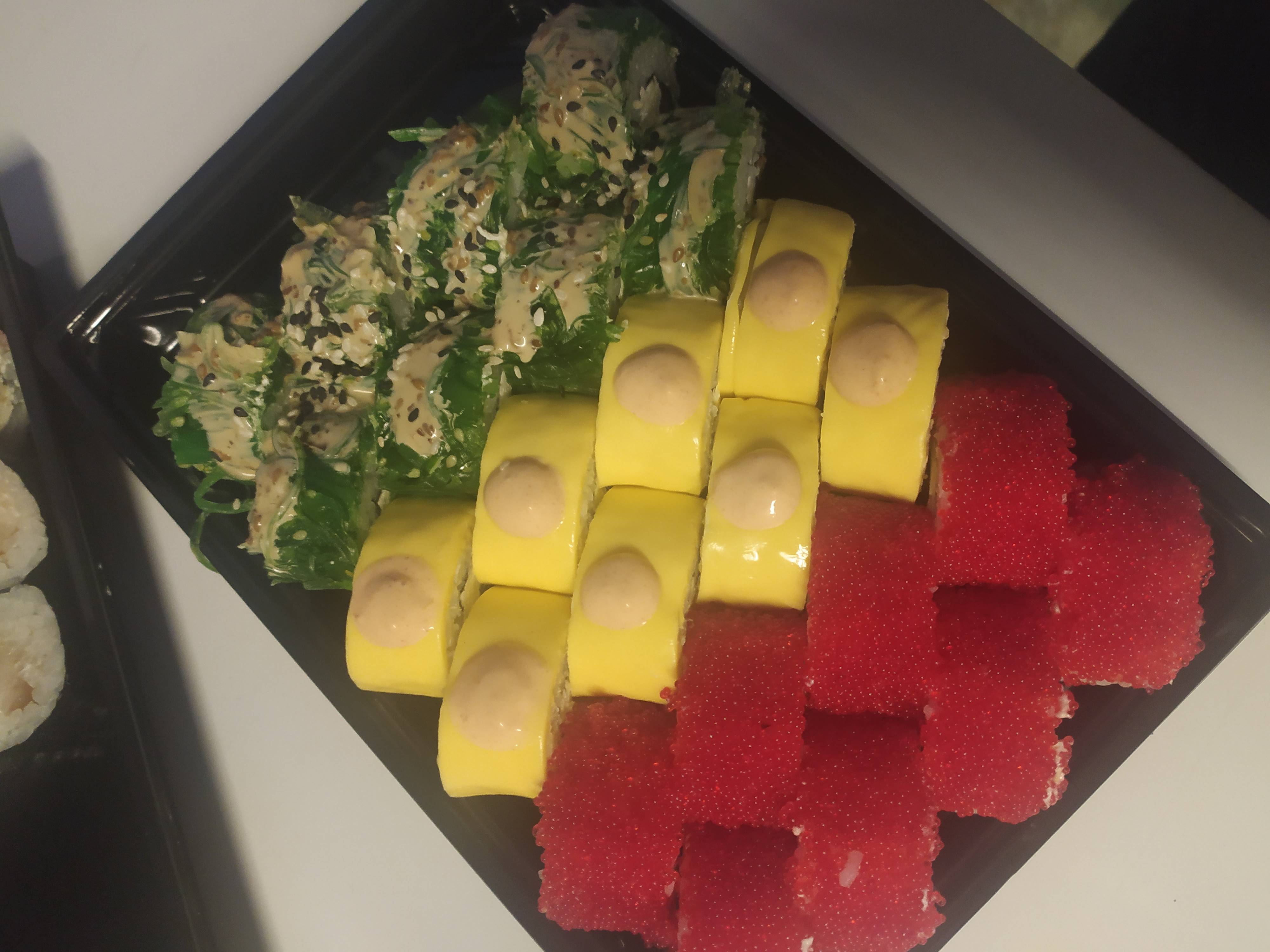 Доставка пришла вовремя,маловато икры,много имбиря на одну порцию, не очень рис, но в целом вкусно 🥰