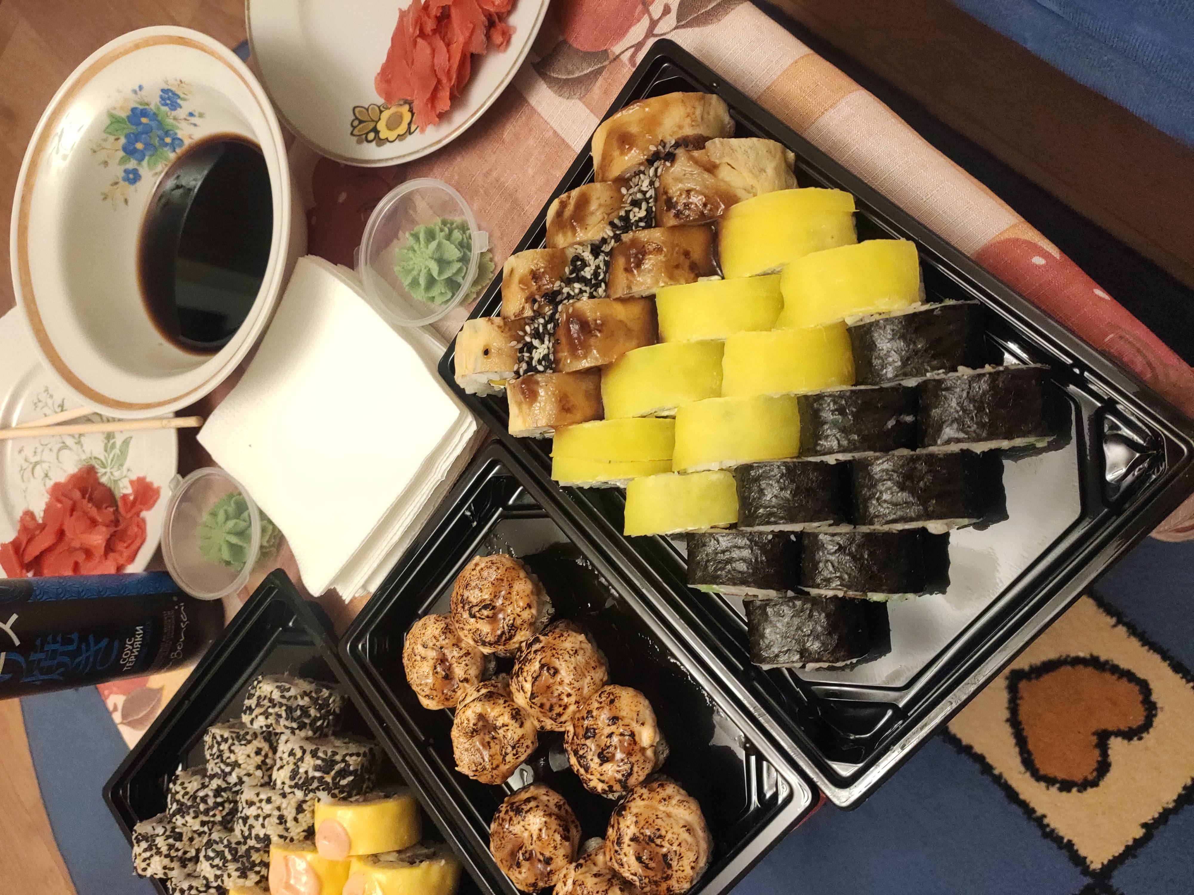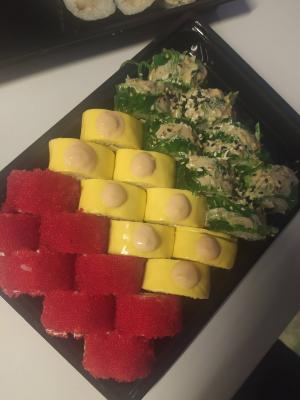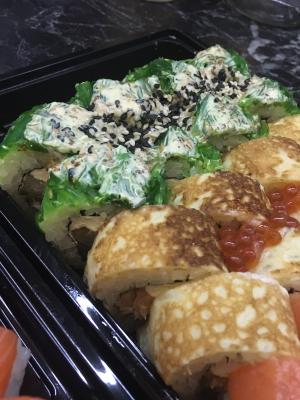 Всё вкусно, красиво и качественно. Сытные и аппетитные роллы.Очень нравятся ваши цены и предлагаемый ассортимент. Доставили быстро, приятный курьер.👍