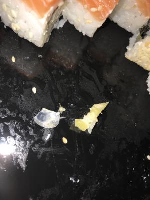 всегда беру сеты только у вас! по размеру, количеству рыбы и начинки прекрасно! вкус тоже всегда нежный, сбаланированный.. но сегодня в ролле с такуаном из сета «Синатра» попался кусок какого-то пластика что ли.. было не очень приятно..