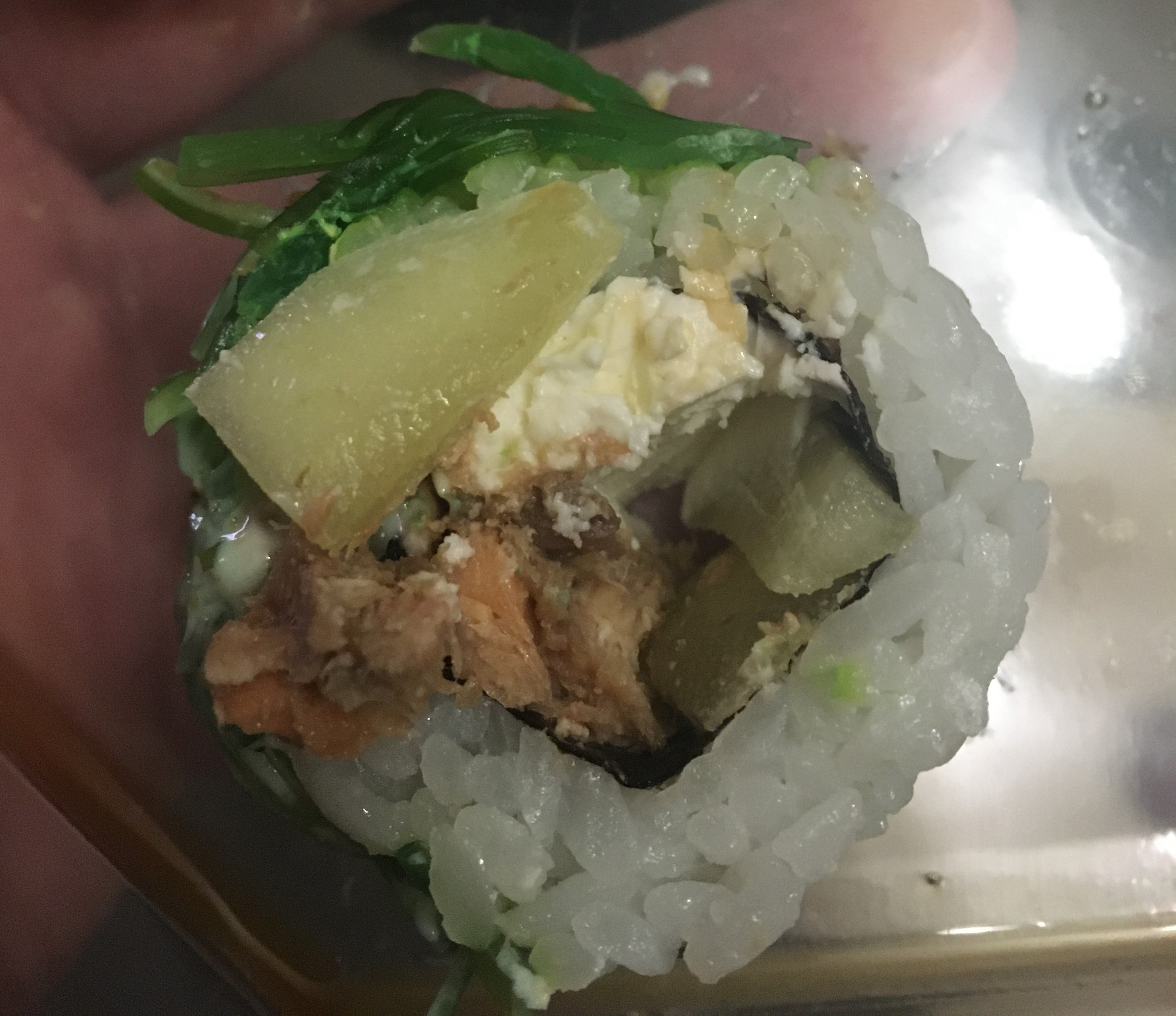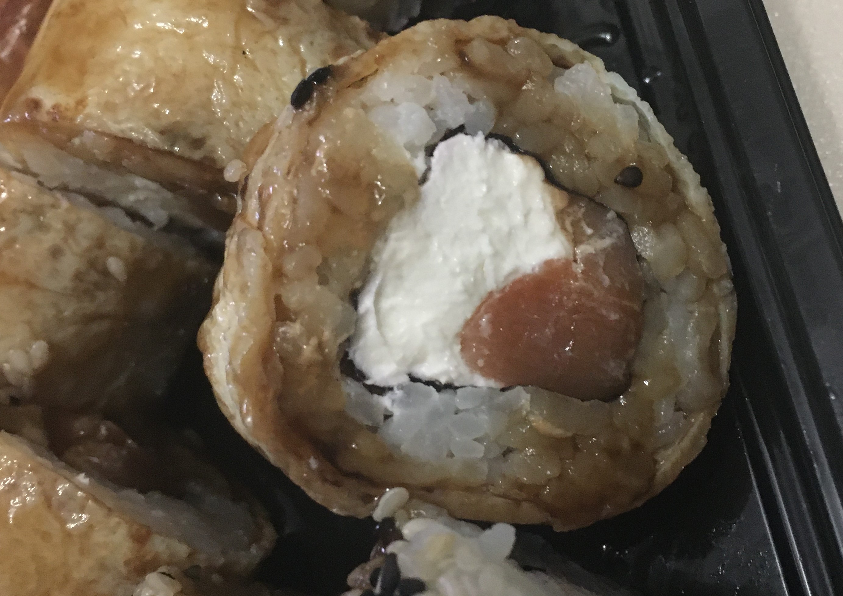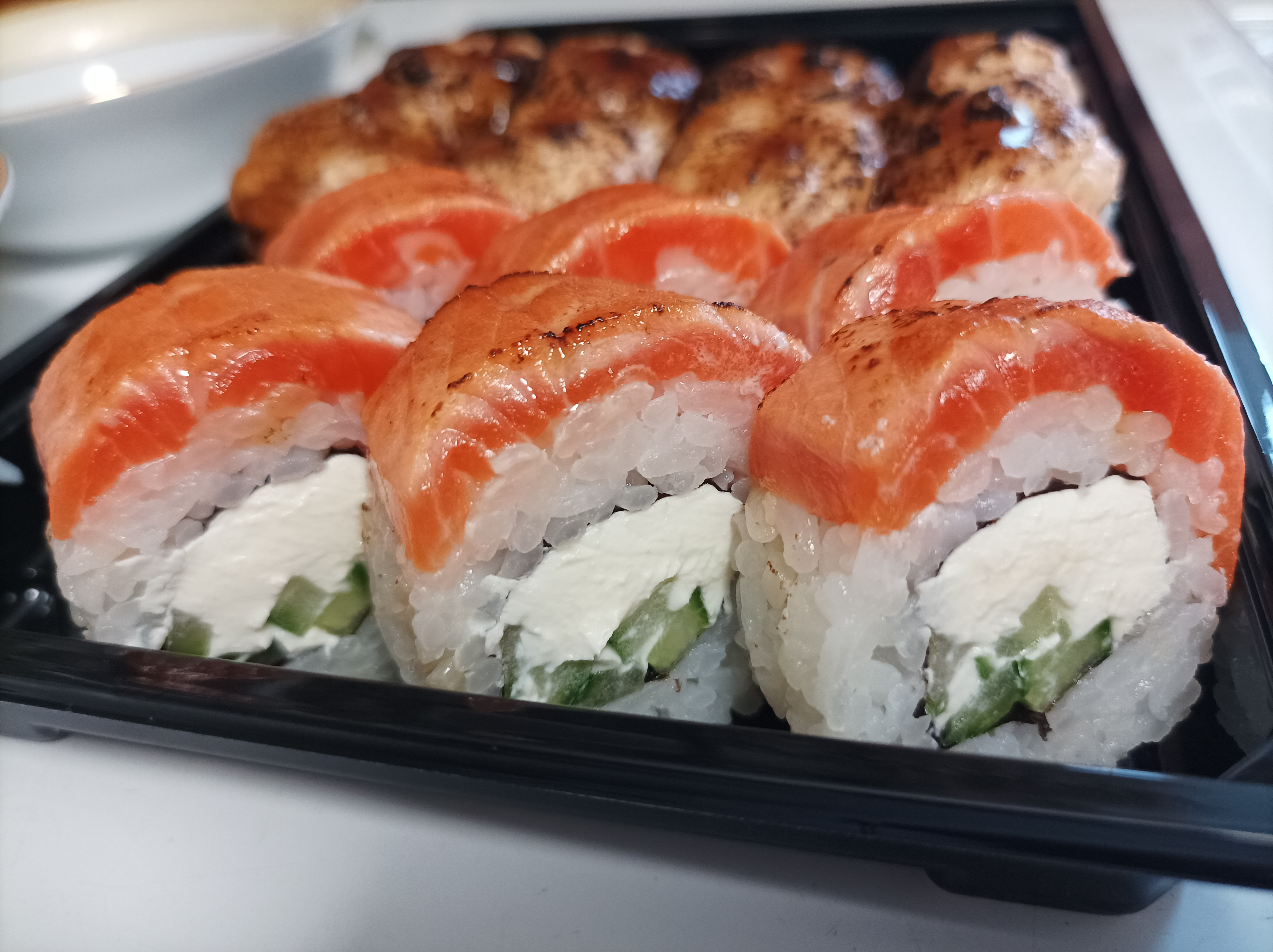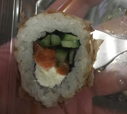 Ролл «маки чизу с икрой» были просто с рисом, «начинки» не было. Остальные на любителя
