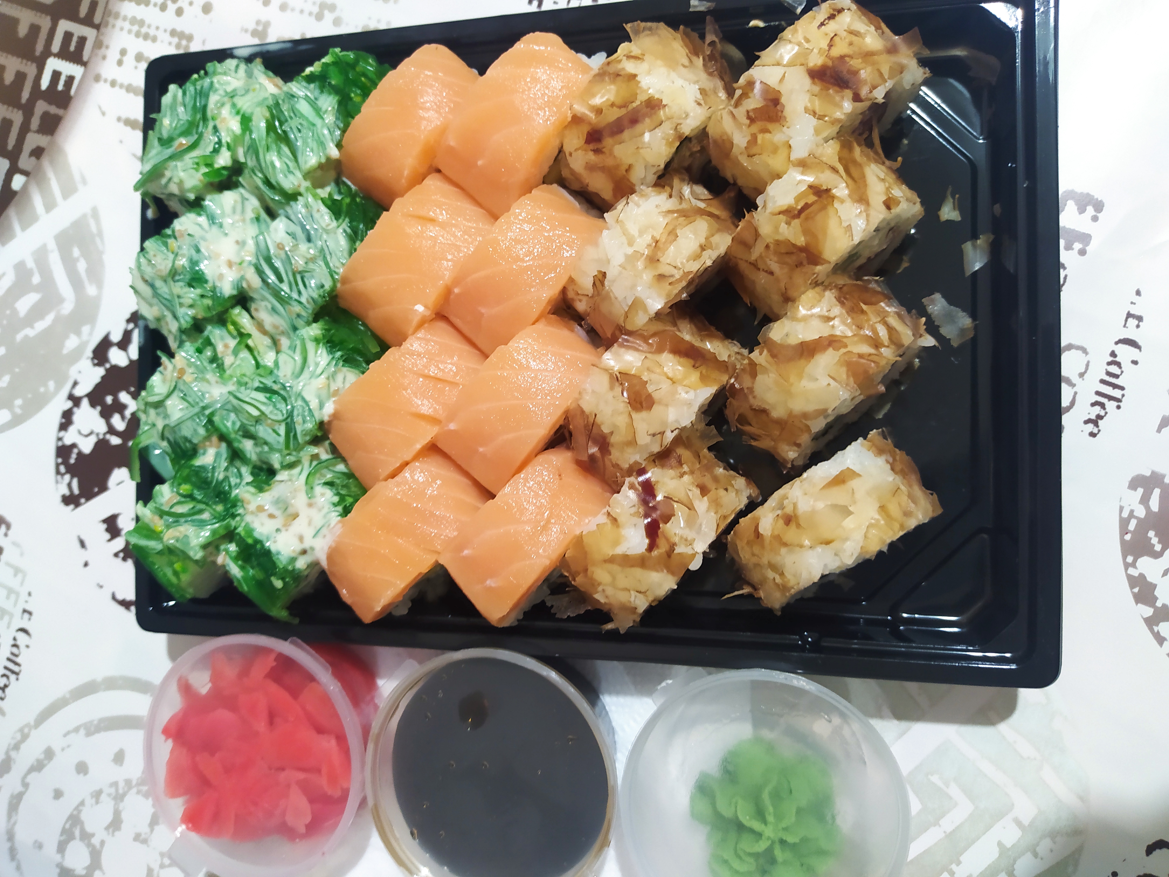 Заказывали сет Синатра, кушали в кафе. Свежие, вкусные суши. Ароматный кофе. Рекомендую!!!