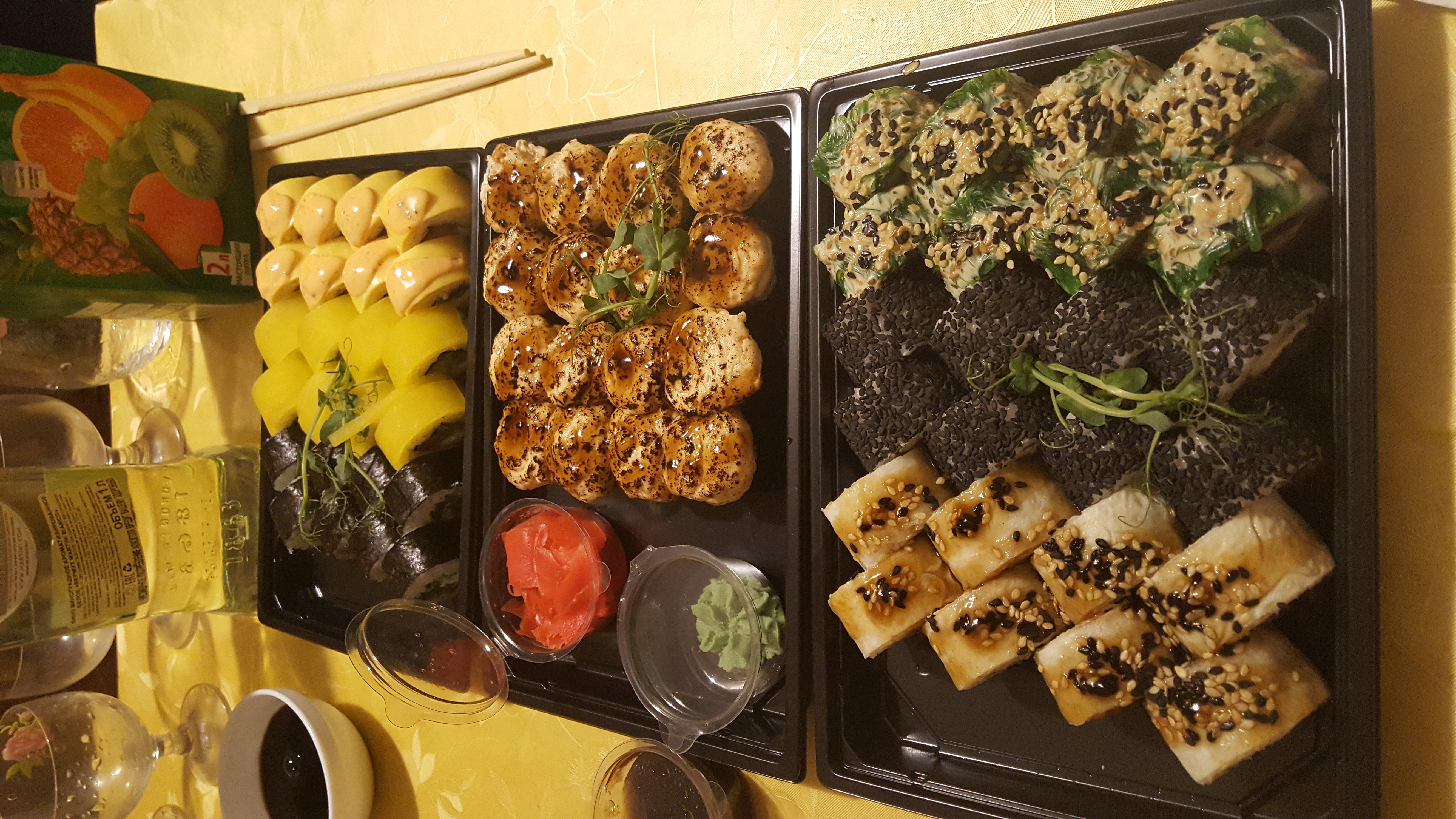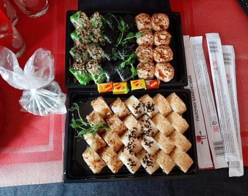 Заказ делала по телефону и за 2 часа до праздника,немного забыла,что суши еще приготовить надо Но и здесь порадовали...курьер приехал во время,праздник удался!!!