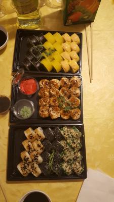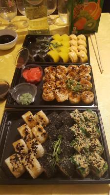 Так вот,хотела выразить благодарность вашему повару!!! Суши были очень вкусные,свежие и красиво оформлены.Мои друзья  остались сытыми и довольными!!!