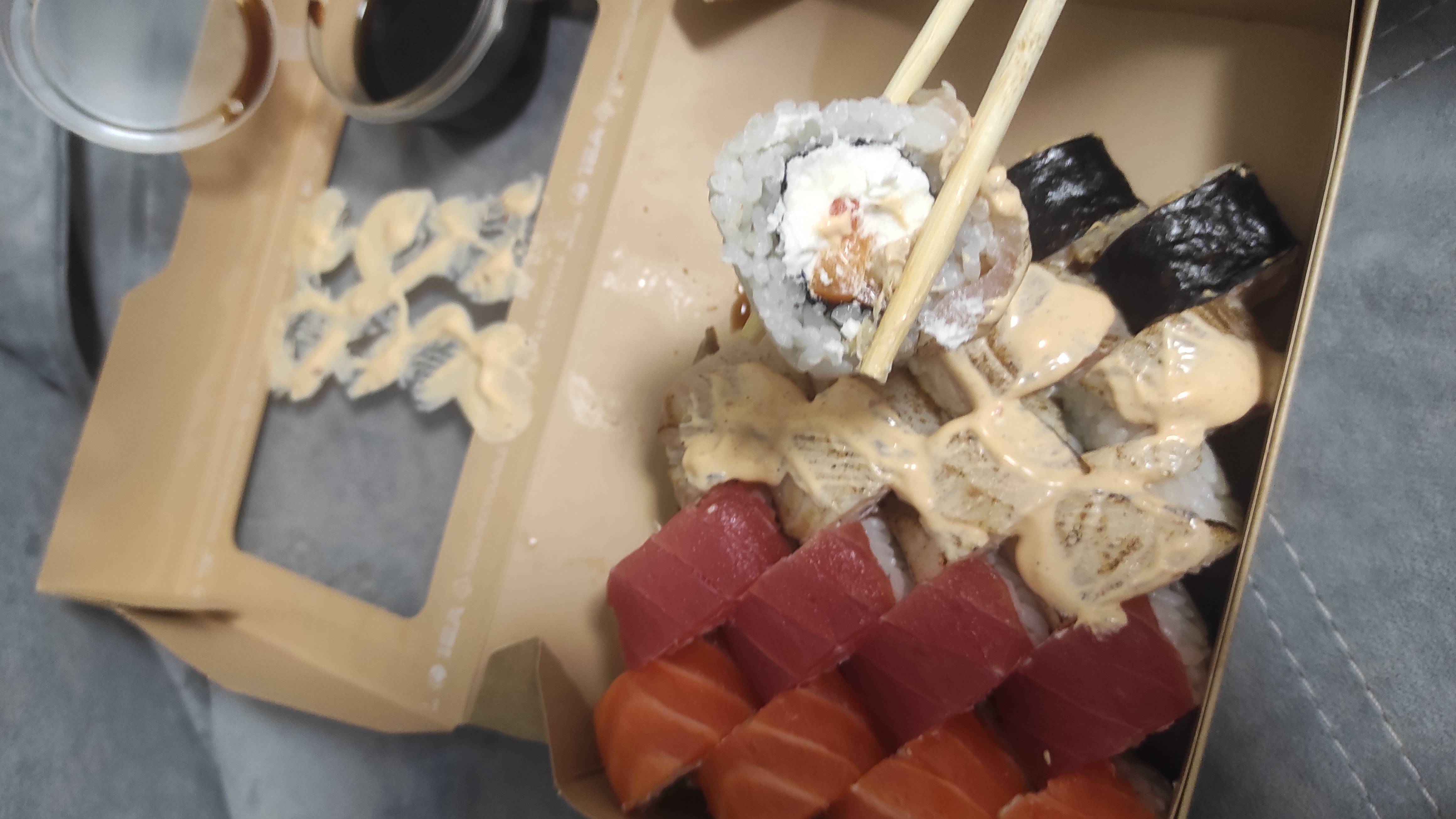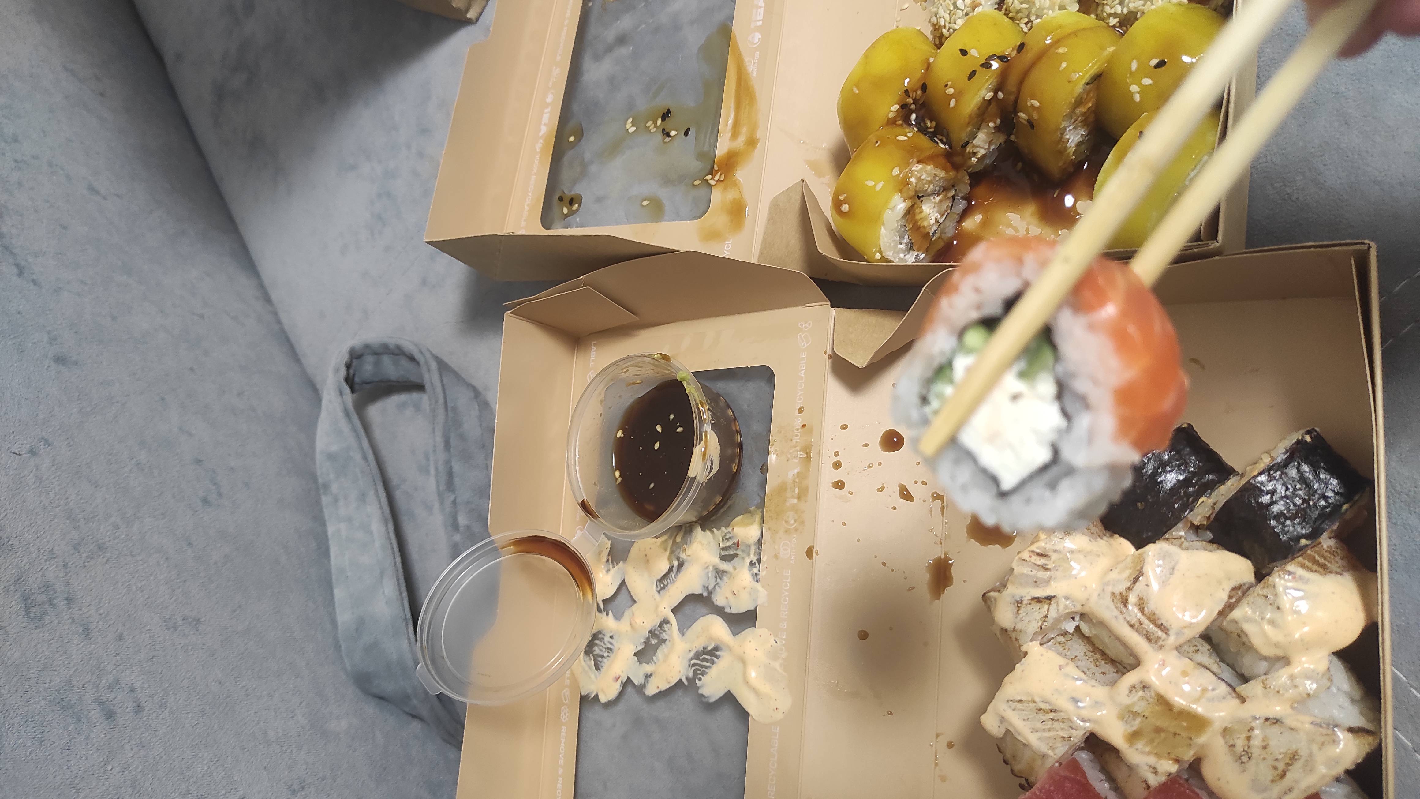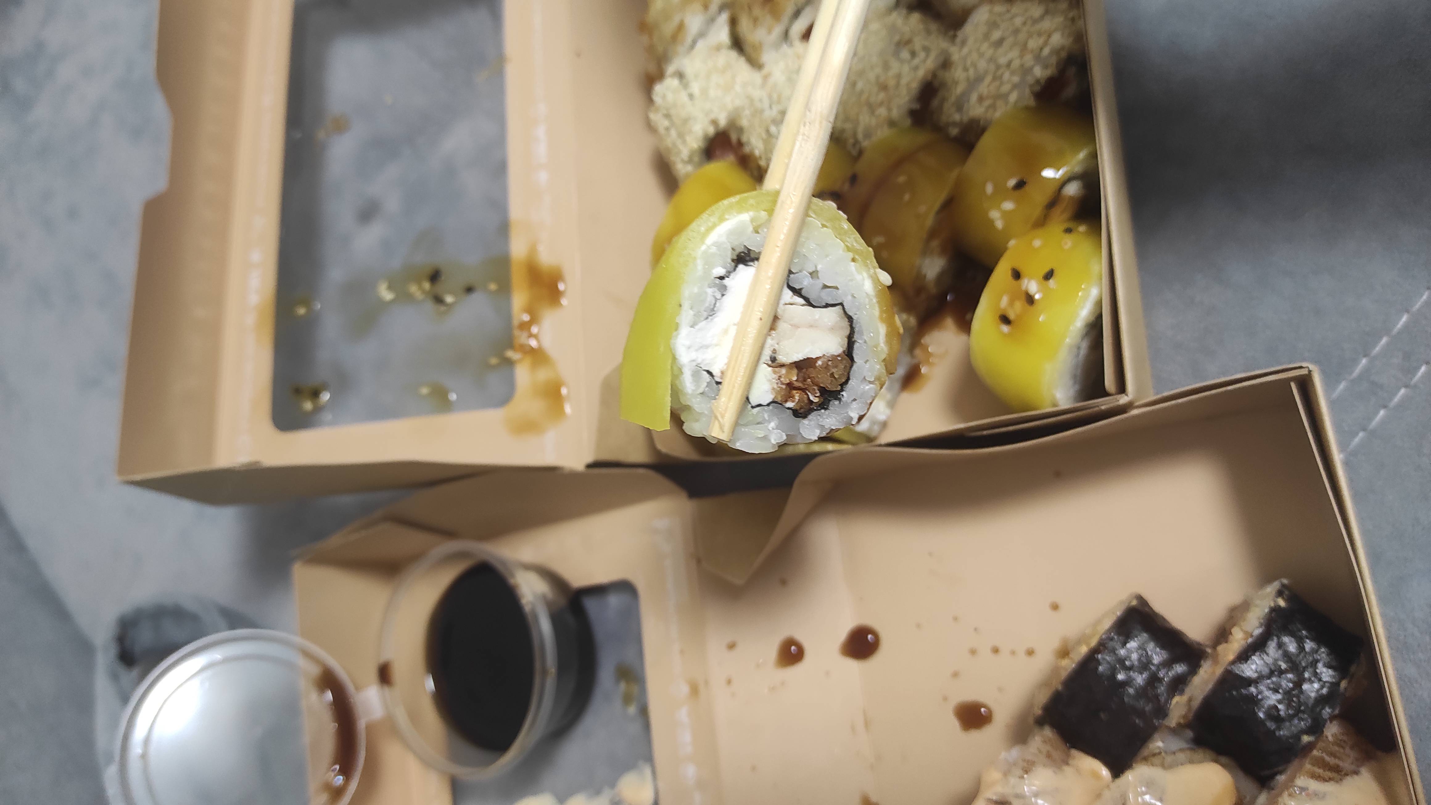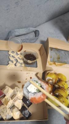 - Гарнир в подарок (при заказе сета). Бесплатная упаковка и 2 комплекта палочек!